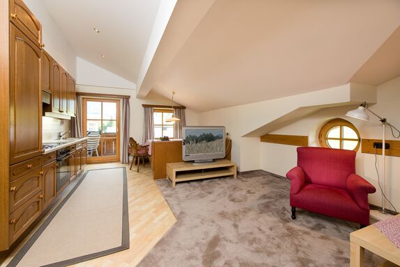 Wunderschönes - im Winter 2010 neu gestaltetes - Appartement für 3 bis 5 Personen. Blick auf die Berge mit schönem, privaten Balkon auf die Ostseite. Kinderermäßigung auf Anfrage. Raumaufteilung: 1 Schlafzimmer, 1 Wohnschlafraum, Küche, Bad mit Dusche und Badewanne, separates WC; Ausstattung: Kabel-TV, Telefon, Musikanlage, E-Herd, Kaffeemaschine, Kühlschrank mit Gefrierfach, Geschirrspüler, Fön und Kosmetikspiegel im Bad;