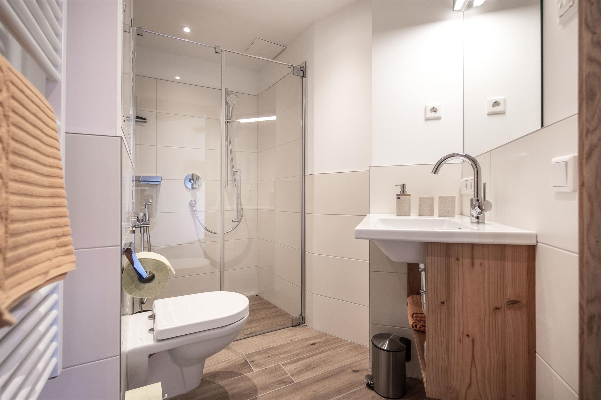 Das Premium Apartment mit 2 Schlafzimmern, 2 Badezimmern & 1 Wohnzimmer befindet sich im 1. OG. Auf ca. 90m² finden Sie natürlich eine voll ausgestattete Küche um Ihre Liebsten zu verwöhnen, modernste Einrichtung und viel Liebe zum Detail. Der Balkon bietet eine atemberaubende Aussicht.