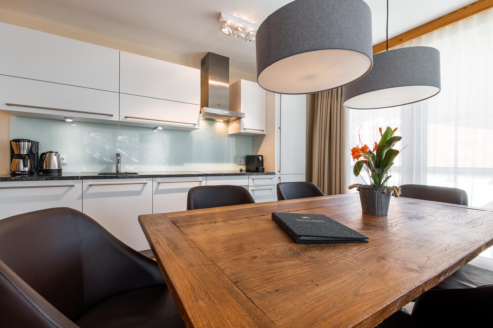Das exquisite Penthouse liegt direkt unter dem Holzdach des Gebäudes und bietet eine Terrasse/Balkon mit herrlichem Blick auf den Nationalpark Hohe Tauern. Der geschmackvoll gestaltete Wohnbereich ist mit einem Kamin, LCD Flat-TV, Video on Demand ausgestattet. Das Penthouse verfügt über kostenloses WLAN. Die hochwertige, offene Küche mit Kochinsel bietet viel Komfort und ist neben Markengeräten auch noch mit Wasserkocher, Filterkaffee- und Espressomaschine, Toaster, Küchenutensilien und Geschirr ausgestattet. 2 Schlafräume mit je einem King Size-Boxspringbett verfügen beide über Flat-TV. 1 Schlafzimmer ist mit nur 1 Stockbett und Flat-TV ausgestattet. Außerdem gibt es 2 hochwertige Badezimmer wovon sich in einem eine Badewanne befindet