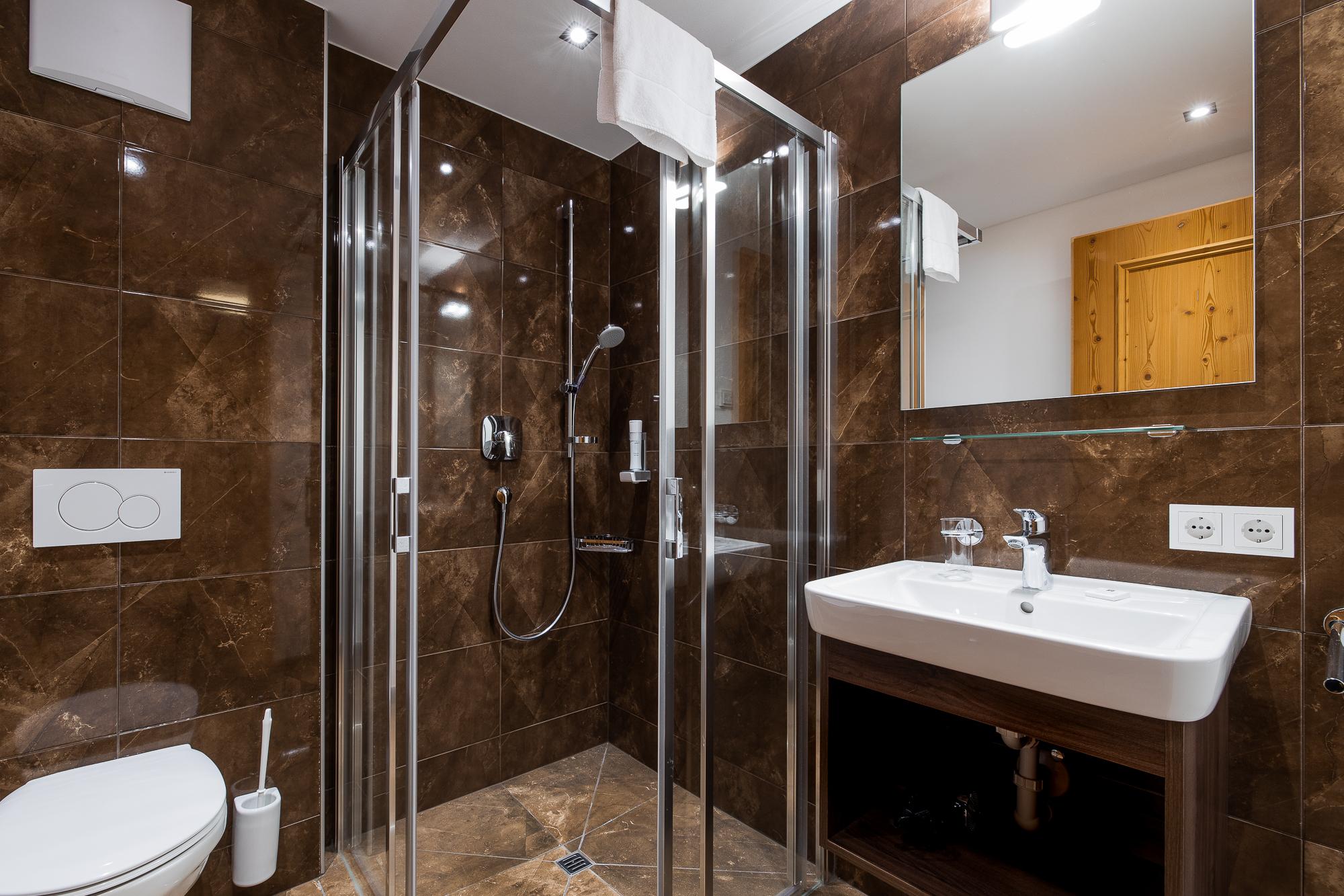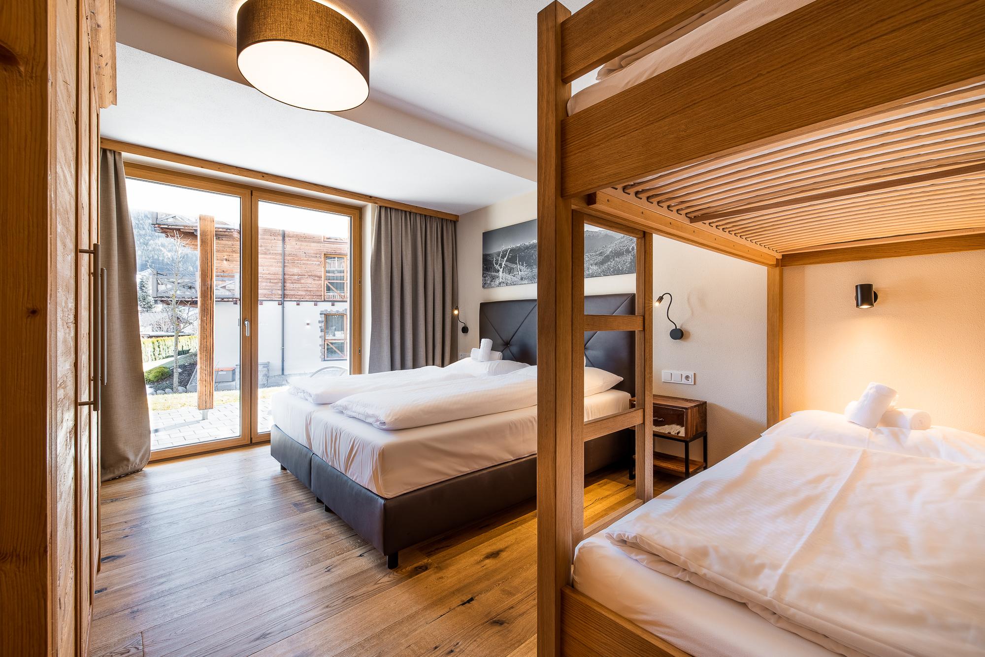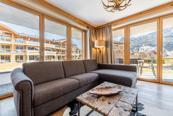 Das hochwertige Apartment bietet eine Terrasse oder einen Balkon mit herrlichem Blick auf den Nationalpark Hohe Tauern. Das geschmackvolle und gemütliche Wohnzimmer ist mit einer komfortablen Schlafcouch für 2 Personen (auf Anfrage; EUR 15,00 pro Person/Tag; Bezahlung vor Ort) und LCD Flat-TV und Video on Demand ausgestattet. Die hochwertige Küche ist neben Markengeräten auch noch mit Wasserkocher, Filterkaffee- und Espressomaschine, Toaster, Küchenutensilien und Geschirr ausgestattet. Die 2 Schlafzimmer verfügen über je ein King Size-Boxspringbett, Flat-TVs und direkten Zugang zu Terrasse/Balkon. In einem der beiden Schlafzimmer befindet sich 1 zusätzliches Stockbett. Es gibt 2 hochwertige Badezimmer mit Badewanne oder Dusche im Apartment