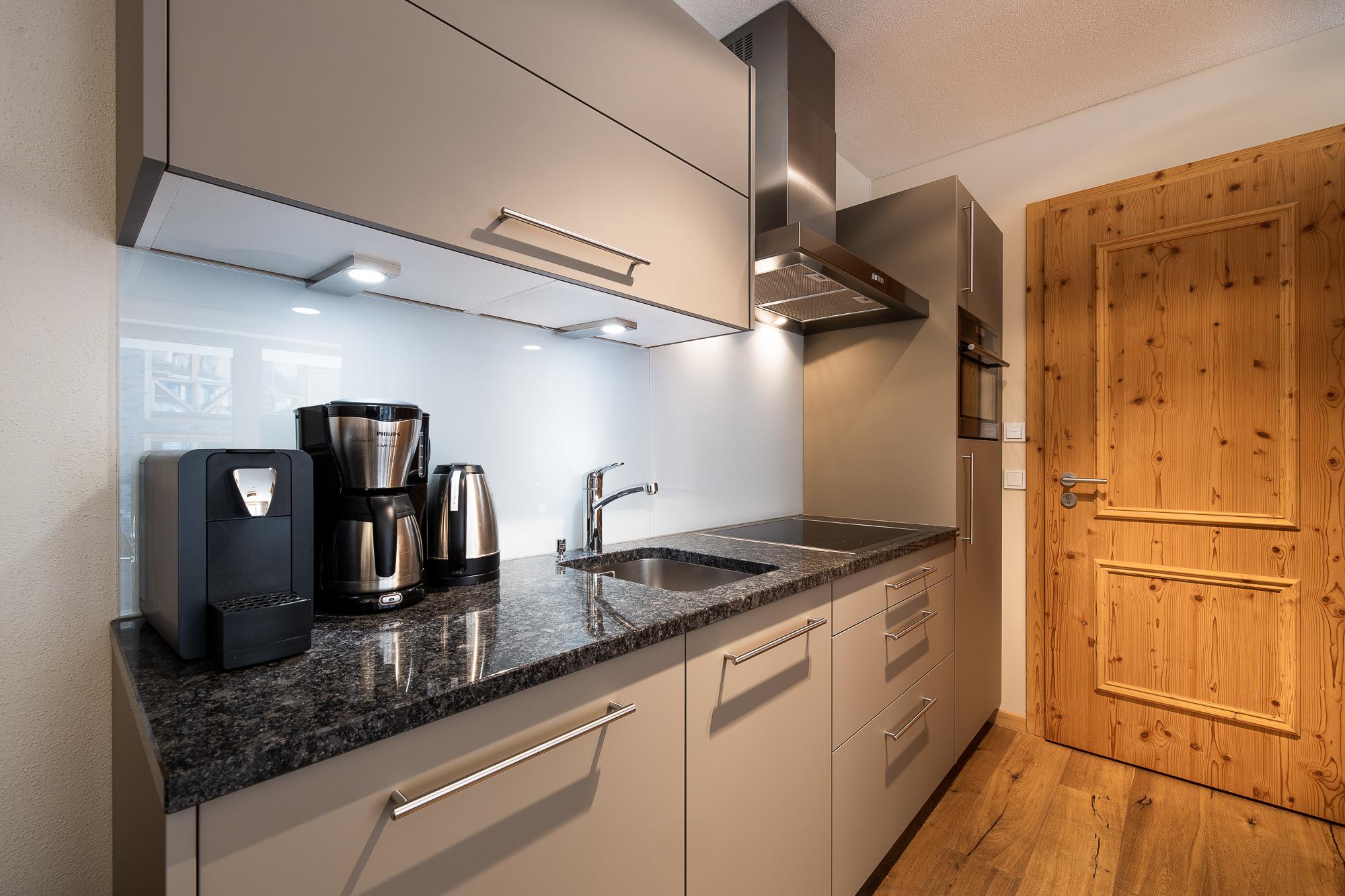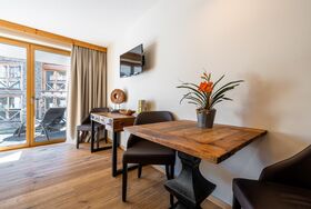 Das hochwertige Studio bietet eine Terrasse mit herrlichem Blick auf den Nationalpark Hohe Tauern. Das geschmackvolle und gemütliche Schlaf- und Wohnzimmer ist mit einem King Size-Boxspringbett, LCD Flat-TV, Video on Demand ausgestattet. Das Studio verfügt über kostenloses W-LAN. Die hochwertige, offene Küche bietet viel Komfort und ist neben Markengeräten auch noch mit Wasserkocher, Filterkaffe- und Espressomaschine, Toaster, Küchenutensilien und Geschirr ausgestattet. Es gibt ein hochwertiges Badezimmer mit Badewanne