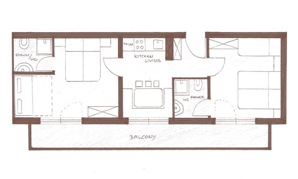 Im 2. OBERGESCHOSS - Wohnfläche ca. 50 m² - südseitig Sonnige Lage mit herrlichem Ausblick, einfach die Seele baumeln lassen. Die heimischen Hölzer verleihen Ihrem Urlaub eine ansprechende Atmosphäre. Bestehend aus Süd-Balkon, 2 Schlafzimmern jeweils mit eigenem Bad (DU/WC, Fön) und einer gemütlich eingerichteten Wohn-Küche. Ausgestattet mit jeweils Flat-Kabel-TV, Radio, Safe; Küche mit Geschirrspüler (Tabs vorhanden), E-Herd, Backofen, Kühlschrank mit Gefrierfach, Mikrowelle, Kaffeemaschine, Wasserkocher, Toaster, Inventar, Bettwäsche, Bade- und Handtücher, Geschirrtücher und Spülmittel, ...