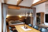 Unser Luxus-Appartment (75qm große, moderne Ferienwohnung im 3.OG mit Balkon) bietet sich besonders für Familien mit Kindern an. Sie verfügt über 2 getrennte Schlafzimmer (ein Wohn-Schlafraum mit Doppelbett, ein separates Schlafzimmer/Dreibettzimmer - 1 Einzelbett (90x200cm), 1 Doppelbett (180x200cm), Wohn-Schlafzimmer mit gemütlicher Couch und Esstisch mit 6 Stühlen, LED-TV, Radio, DVD, kostenl. W-LAN;, zwei Duschen mit WB, 2 WC´s (1 WC extra, 1 im Bad) und einer voll ausgestatteten Küchenzeile mit Besteck, Tischwäsche und sonst. Utensilien. Der Ausblick vom Balkon im dritten Stock vom PANORAMAFENSTER auf die Berge ist atemberaubend. Unser Garten mit Gartenhütte und Kinderspielplatz (Poolbenützung kostenlos/saisonal, Grillmöglichkeit).