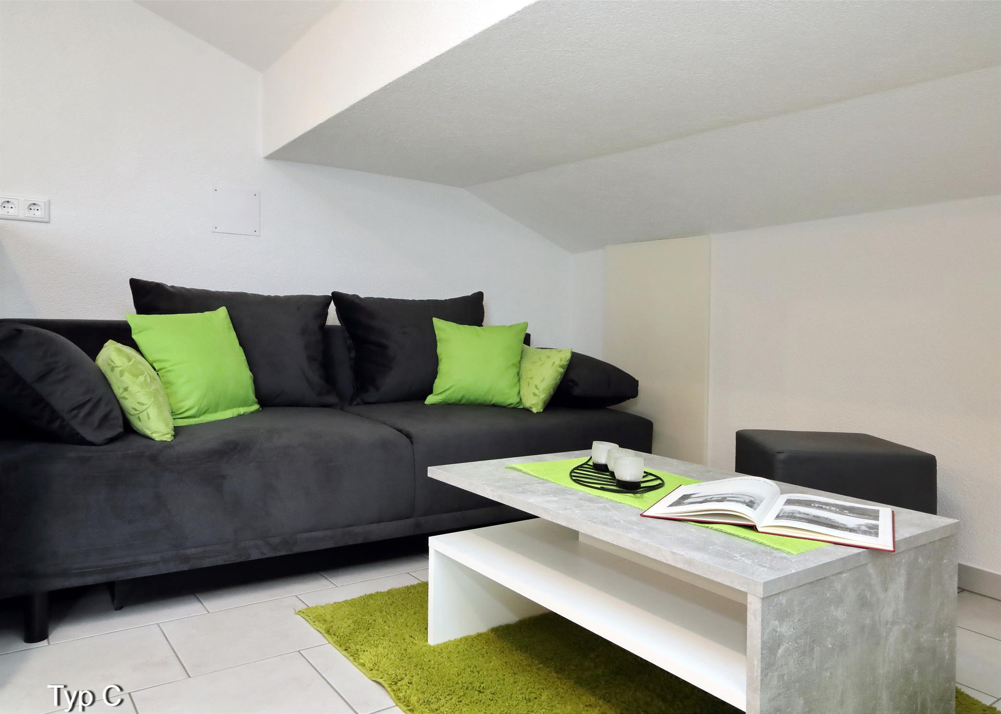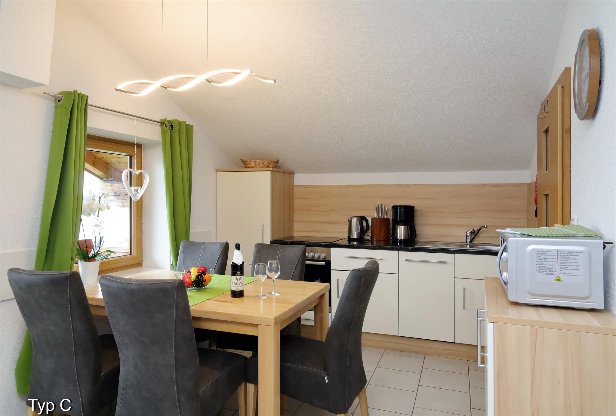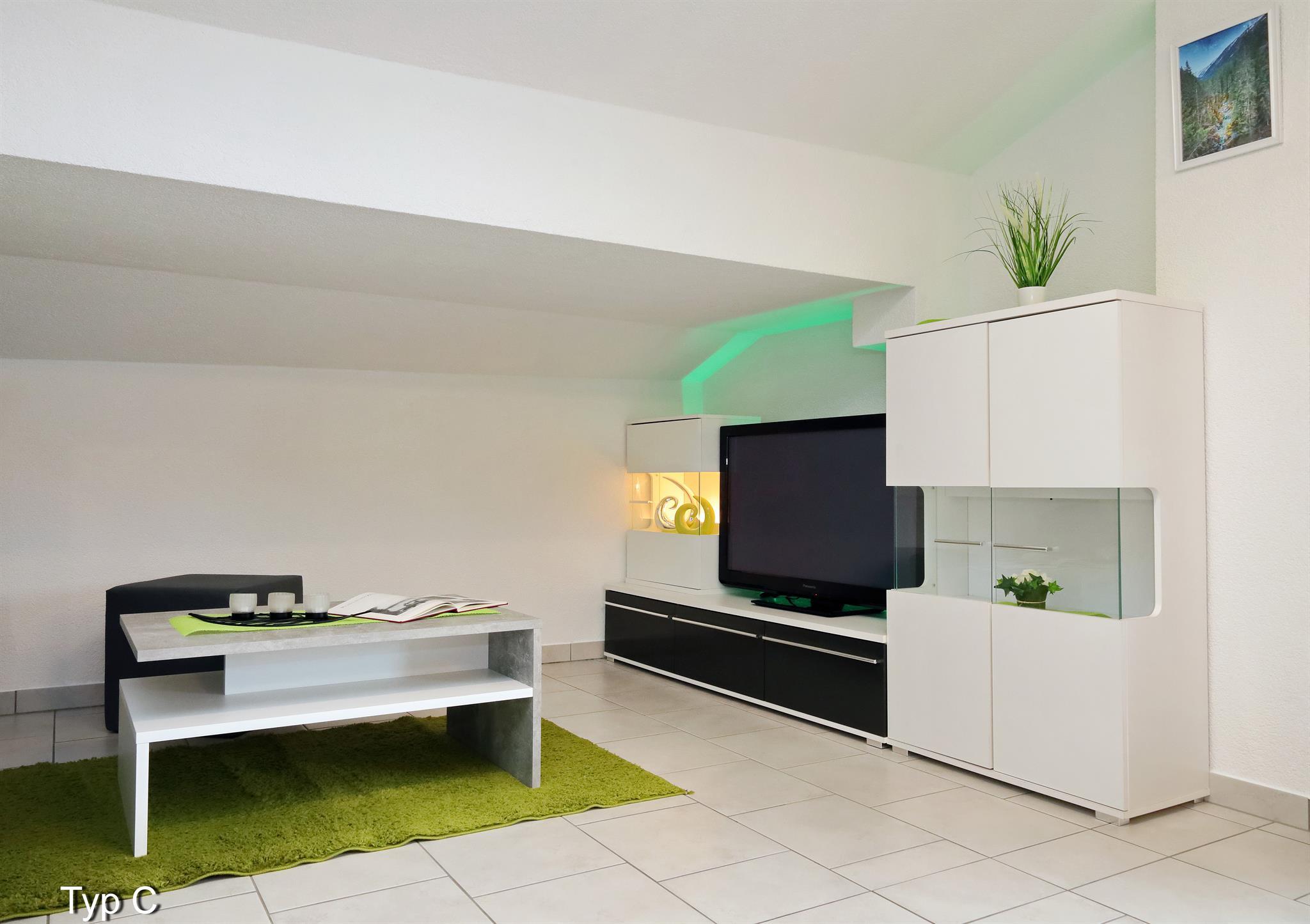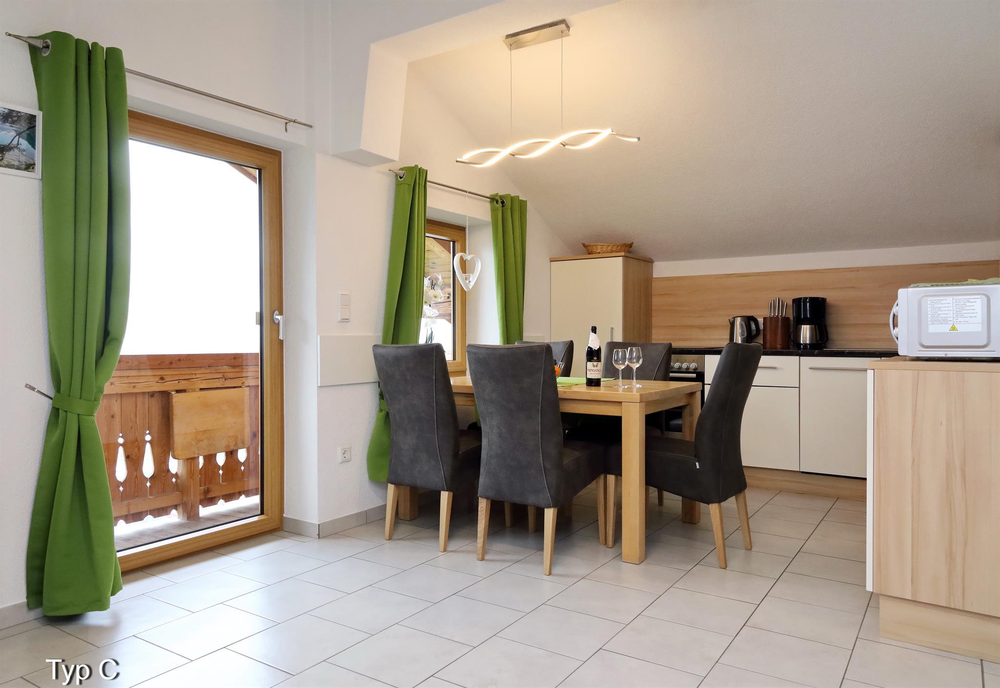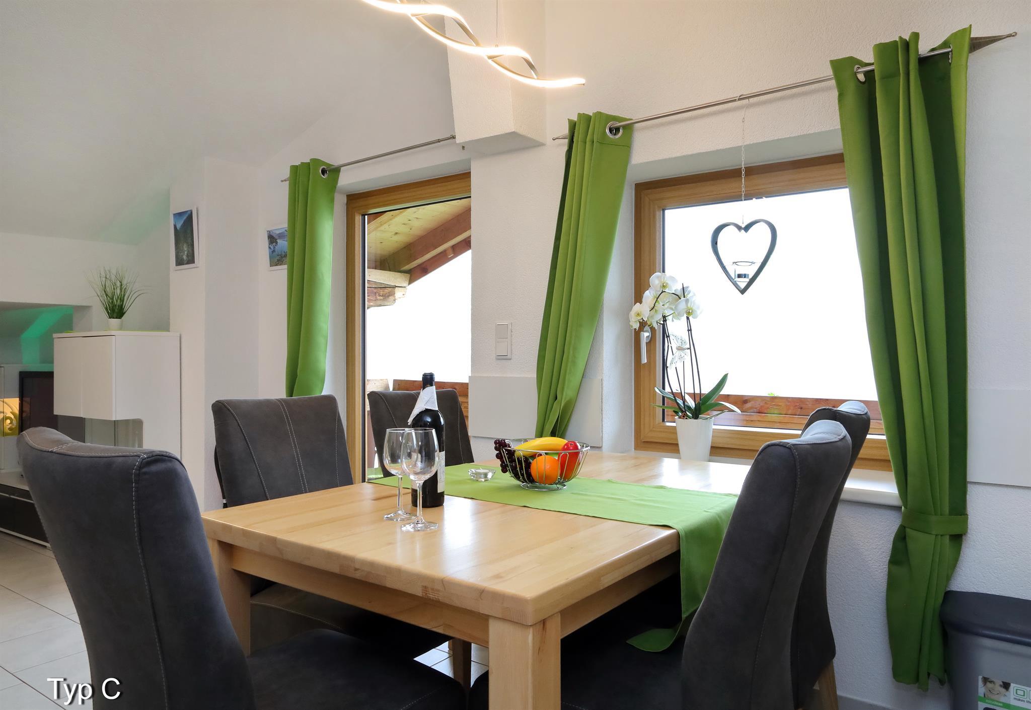 Das Appartement ist gemütlich und modern eingerichtet und bietet einen herrlichen Balkon. Materialien wie Holz, Edelstahl und Leder geben den Chalets einen eigenen Flair. Es ist ideal für bis zu 6Personen mit zwei Schlafzimmer mit Doppelbett sowie einer Couch im Wohnbereich. Das Apartment verfügt über eine Einbauküche mit Kühl/Gefrierschrank, Geschirrspüler, Mikrowelle, E-Herd/Backofen, Kaffeemaschine und einen Wasserkocher. Zur Ausstattung gehören natürlich auch Geschirr, Gläser, Töpfe und alle nötigen Utensilien die sie brauchen, um sich ein leckeres Menü zu zaubern. Natürlich verfügen auch alle Wohnungen über gratis Internet und einen Flachbildfernseher mit Kabel TV, sowie einem Föhn in den Badezimmern.