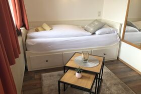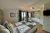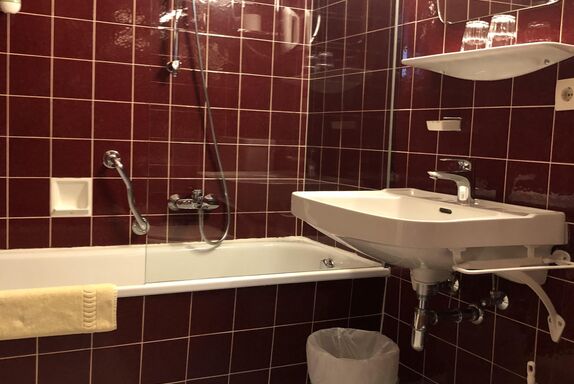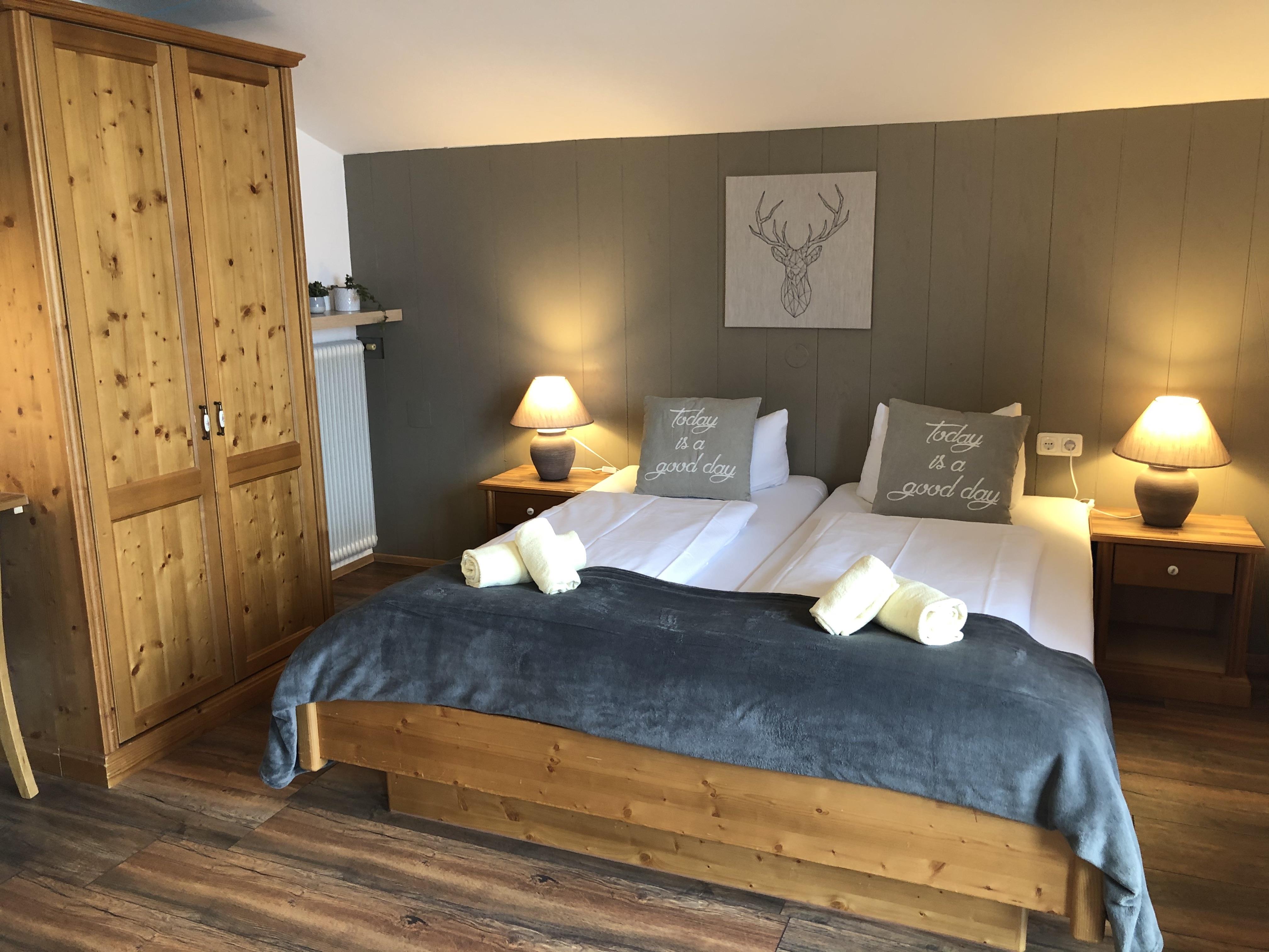 Zimmer mit Doppel- und Einzelbett. Badezimmer mit Bad und Dusche. Free Wireless Internet.