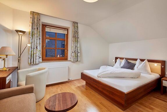 • Ein kleineres Appartement für zwei bis vier Personen mit Doppelbett und Stockbett