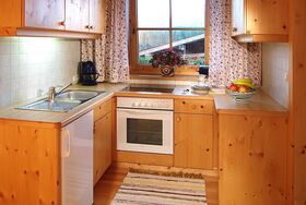 Neu erbaute Ferienwohnung im Landhausstil eingerichtet.Die Kochecke ist ausgestattet mit Backrohr und E-Herd. Südbalkon mit herlichem Blick auf das Kaisergebirge.