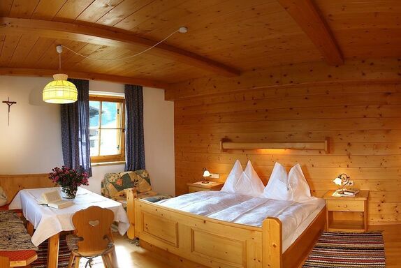 Unser Bauernhof Hacklhof liegt am Ortsanfang von Kössen in ruhiger, sonniger Lage mit herrlichem Blick auf das Kaisergebirge. Direkt am Haus führt der Radweg und Langlaufloipe vorbei. Die drei Ferienwohnungen und das Doppelzimmer sind komfortabel und gemütlich eingerichtet. Gerne bieten wir unseren Gäste frische Eier und Milch und Brötchenservice an. Familien mit Kindern herzlich willkommen!