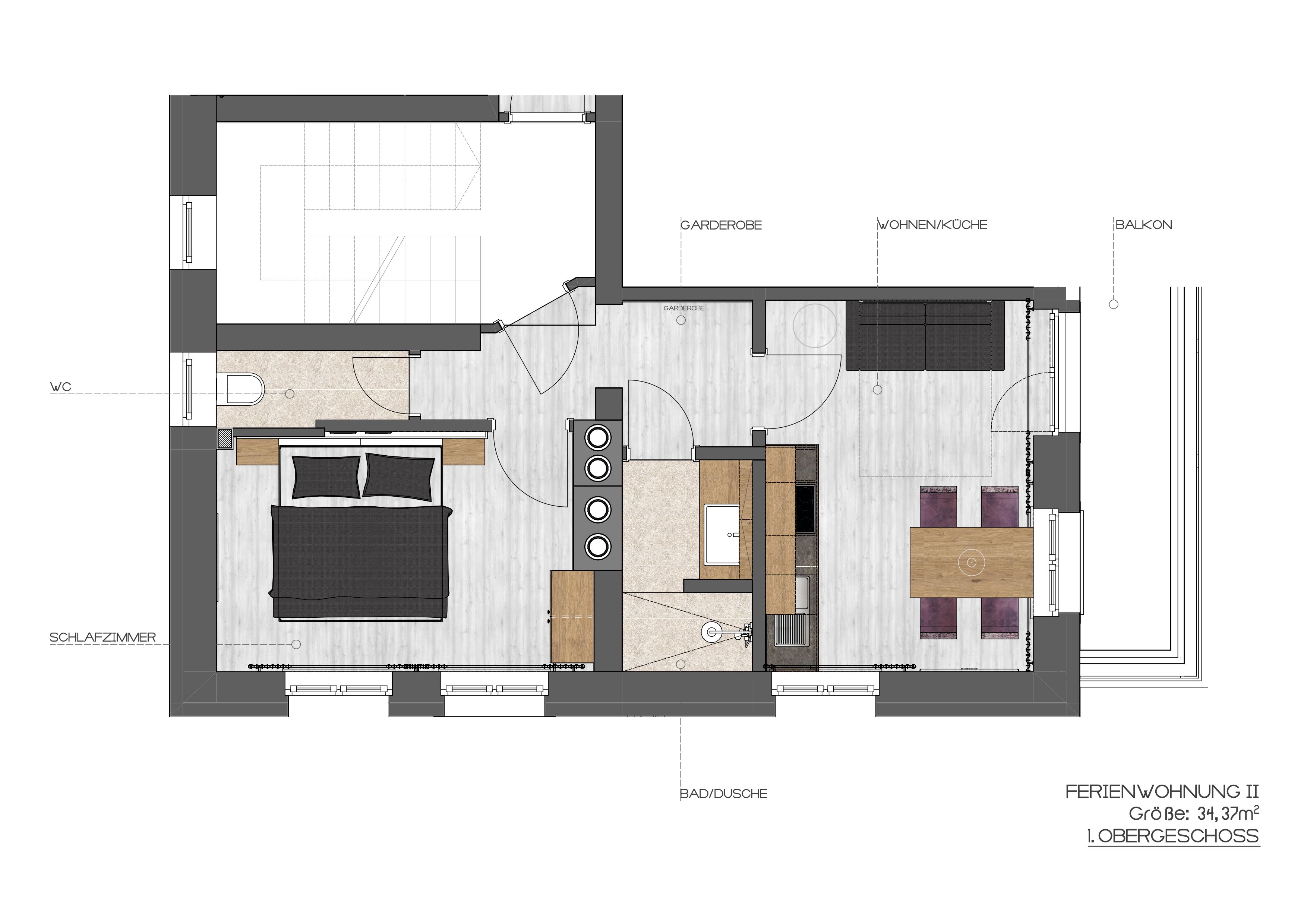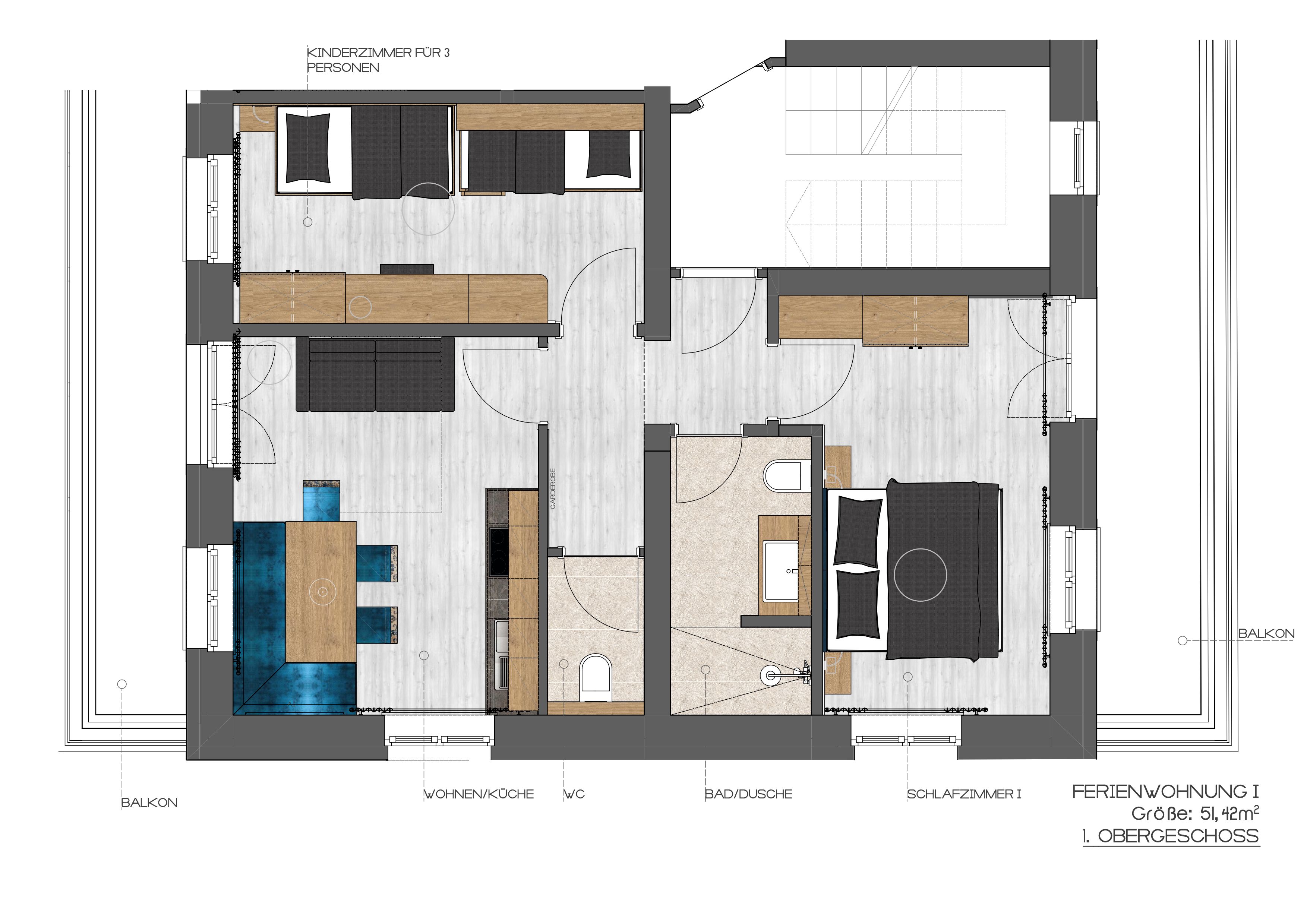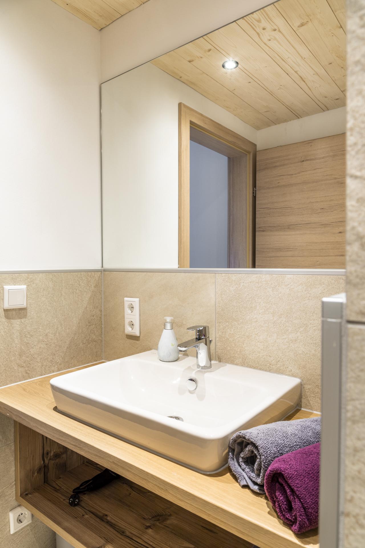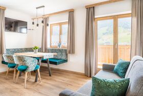 Die neue Ferienwohnung „Aussicht“ bietet, eine herrliche Aussicht auf das Hochkönigmassiv. Mit ca. 52 qm bietet sie Platz für bis zu sieben Personen, ideal für größere Familien oder Freundesgruppen. Die modern, rustikal gestaltete Wohnung besteht aus einem Schlafzimmer für zwei Personen mit Doppelbett, einem Schlafzimmer für drei Personen mit einem Einzelbett und einem Stockbett und einem Wohnbereich mit Ausziehcouch und Schlafmöglichkeit für zwei Personen. Zudem verfügt die Ferienwohnung „Aussicht“ über ein Badezimmer mit Dusche und Toilette, sowie eine weitere, separate Toilette. Die Küche im Wohnbereich bietet Ihren Gästen einen Elektroherd, Backofen, Mikrowelle, Kaffeemaschine, Wasserkocher, Toaster und auch eine Geschirrspülmaschine.