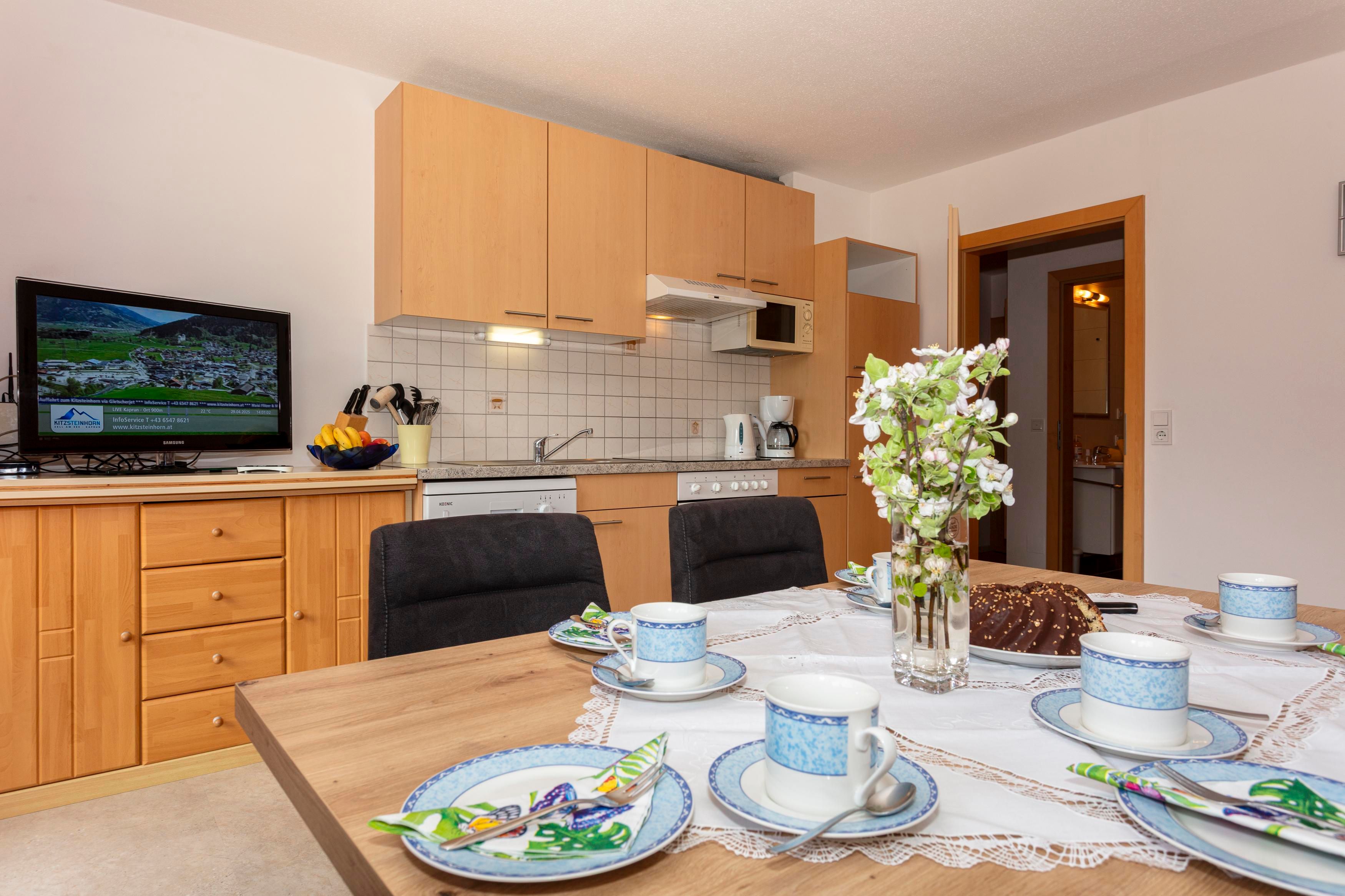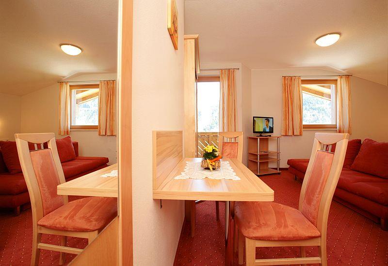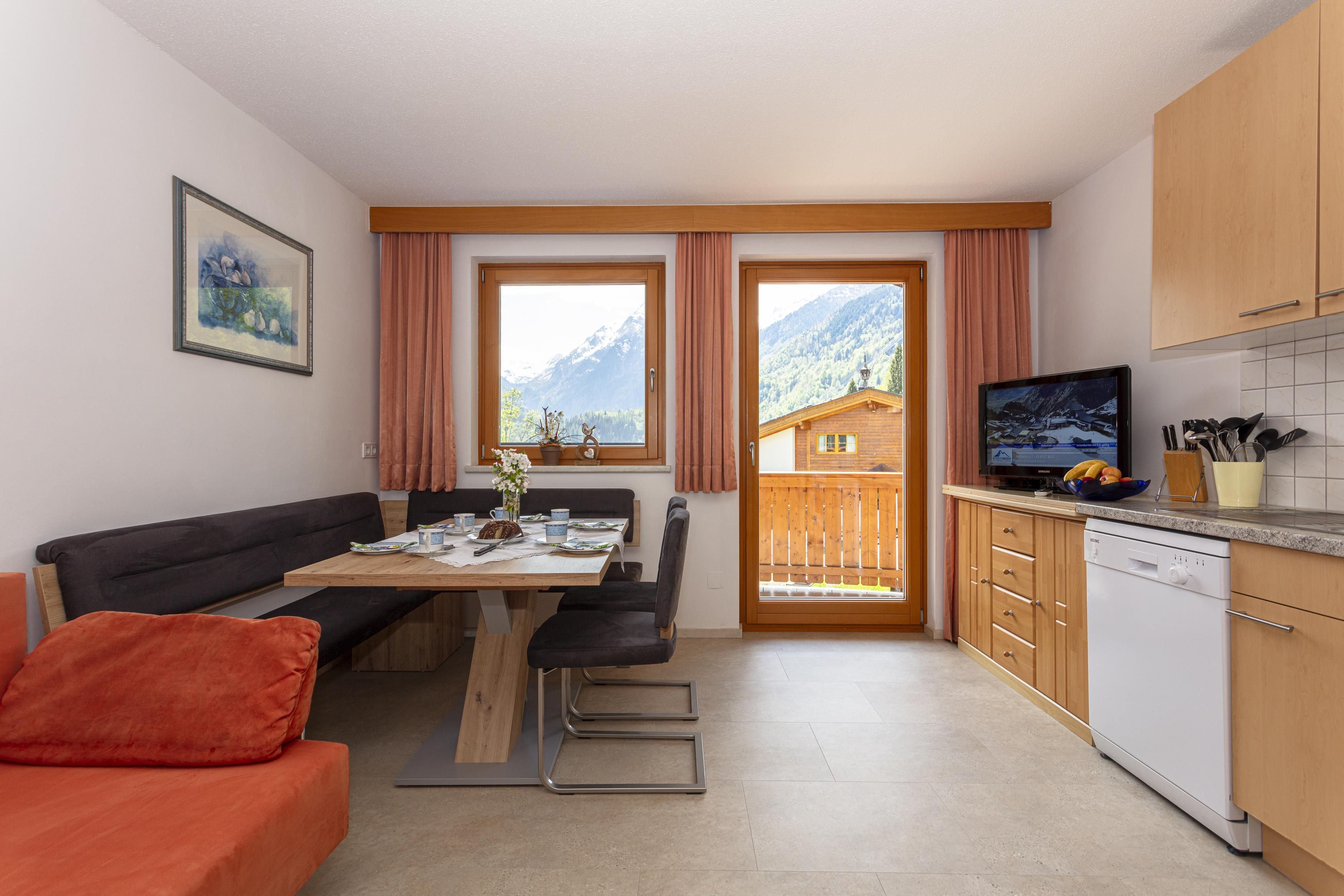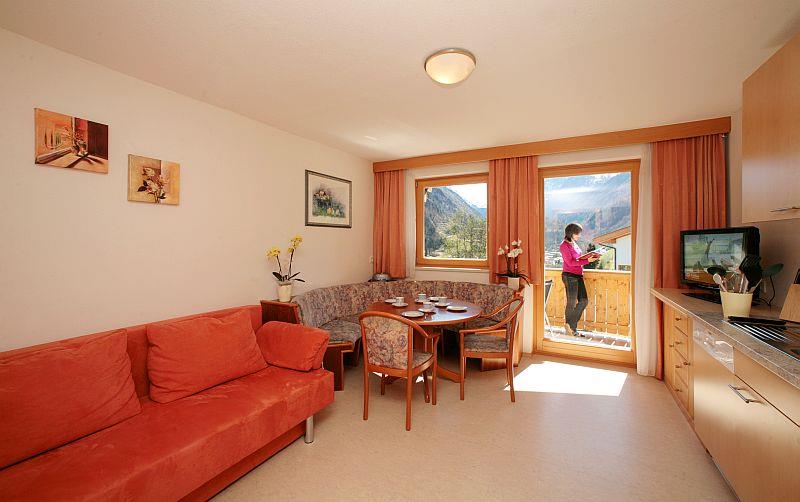 Das Appartement hat eine sehr komfortable Wohnküche mit gemütlicher Essecke und ausziehbarer Couch, zwei getrennte Schlafzimmer (eines davon zusätzlich mit ausziehbarer Doppelcouch), 2 Bäder mit Dusche, 2 WC und 2 Balkone mit herrlichem Ausblick.