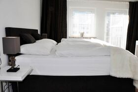 Nett eingerichtetes Zimmer *****Supreme Box-Spring Bett von Fennobed in Komforthöhe Couch Südseitiger Balkon Südseitig gelegen Flat-Screen-Fernseher mit AM/FM Radio Gratis Wi-Fi Bodengleiche Regendusche Haarföhn Handtücher Vorraum