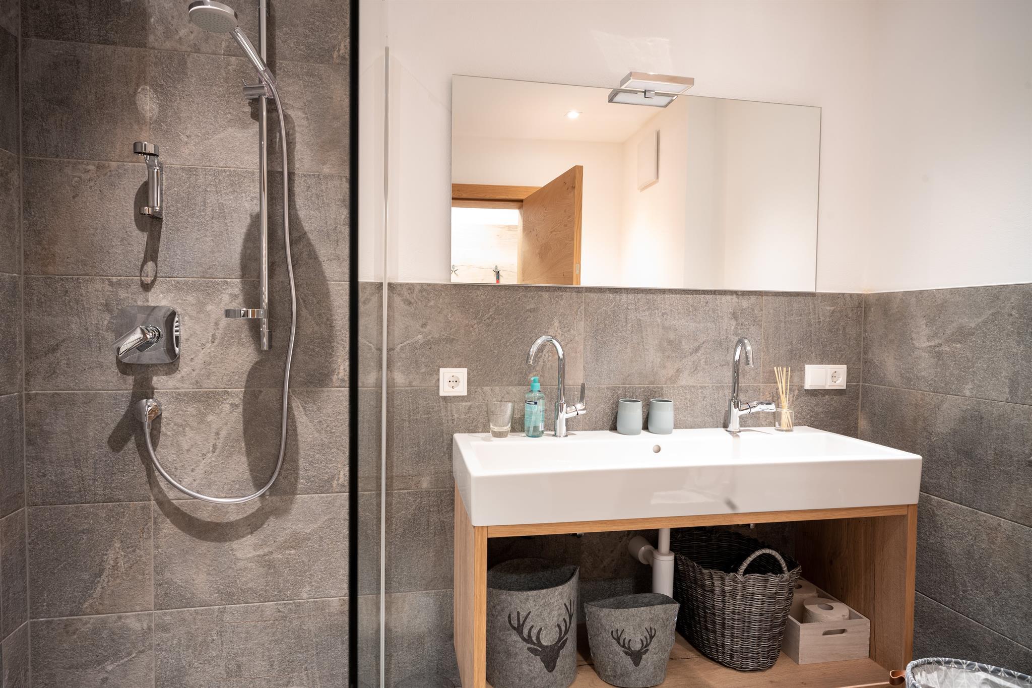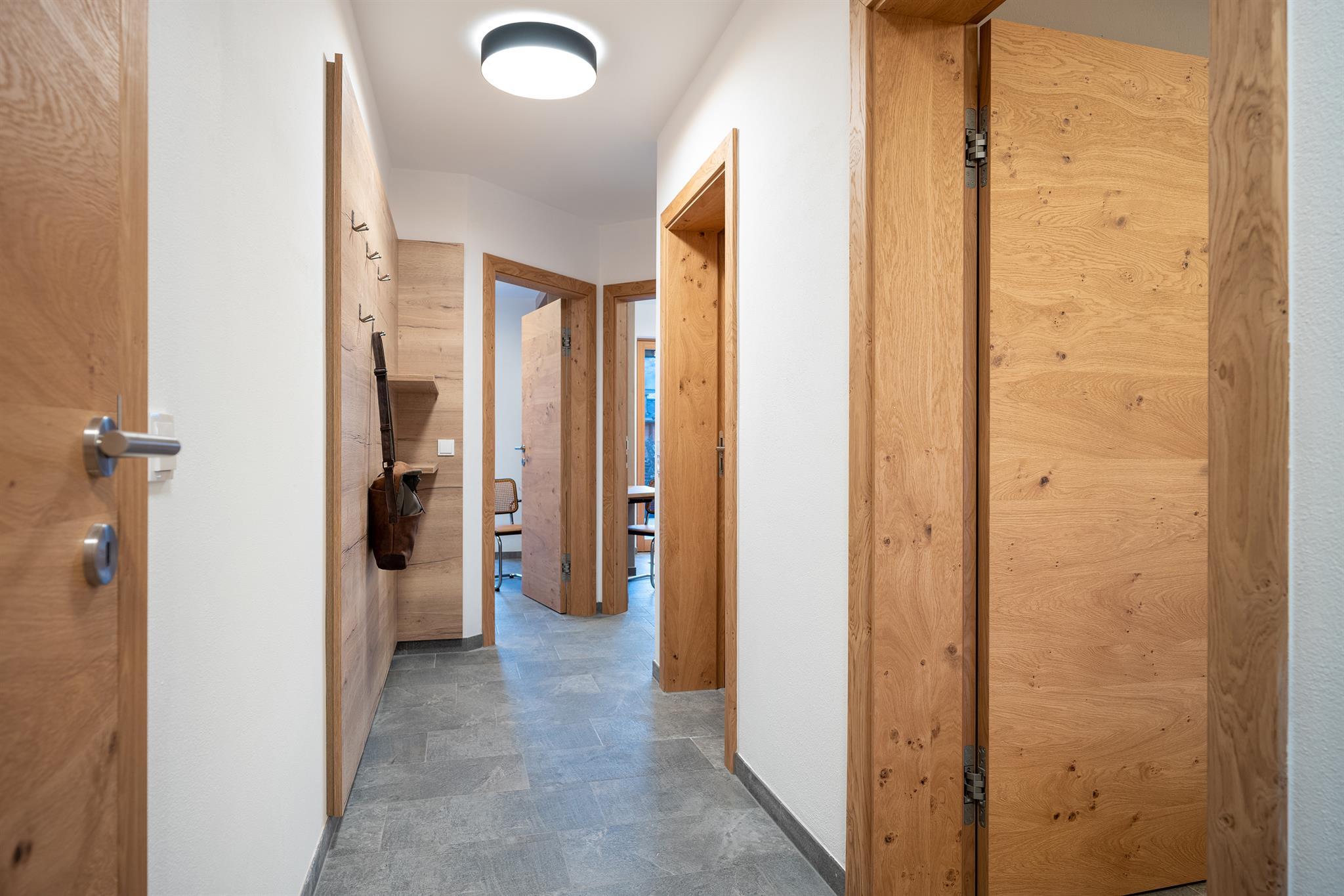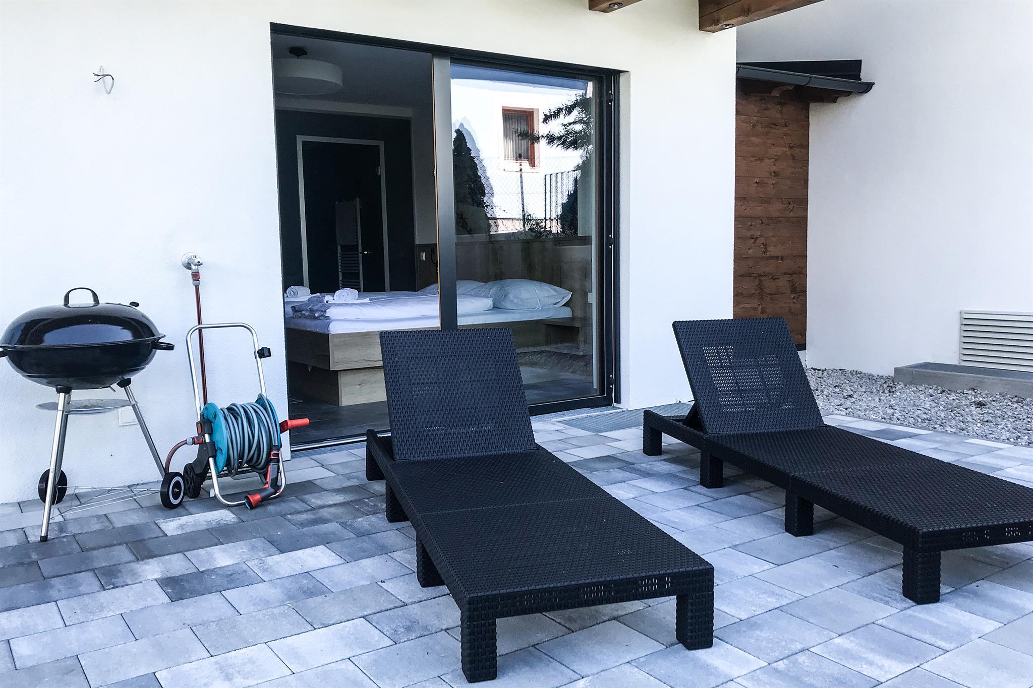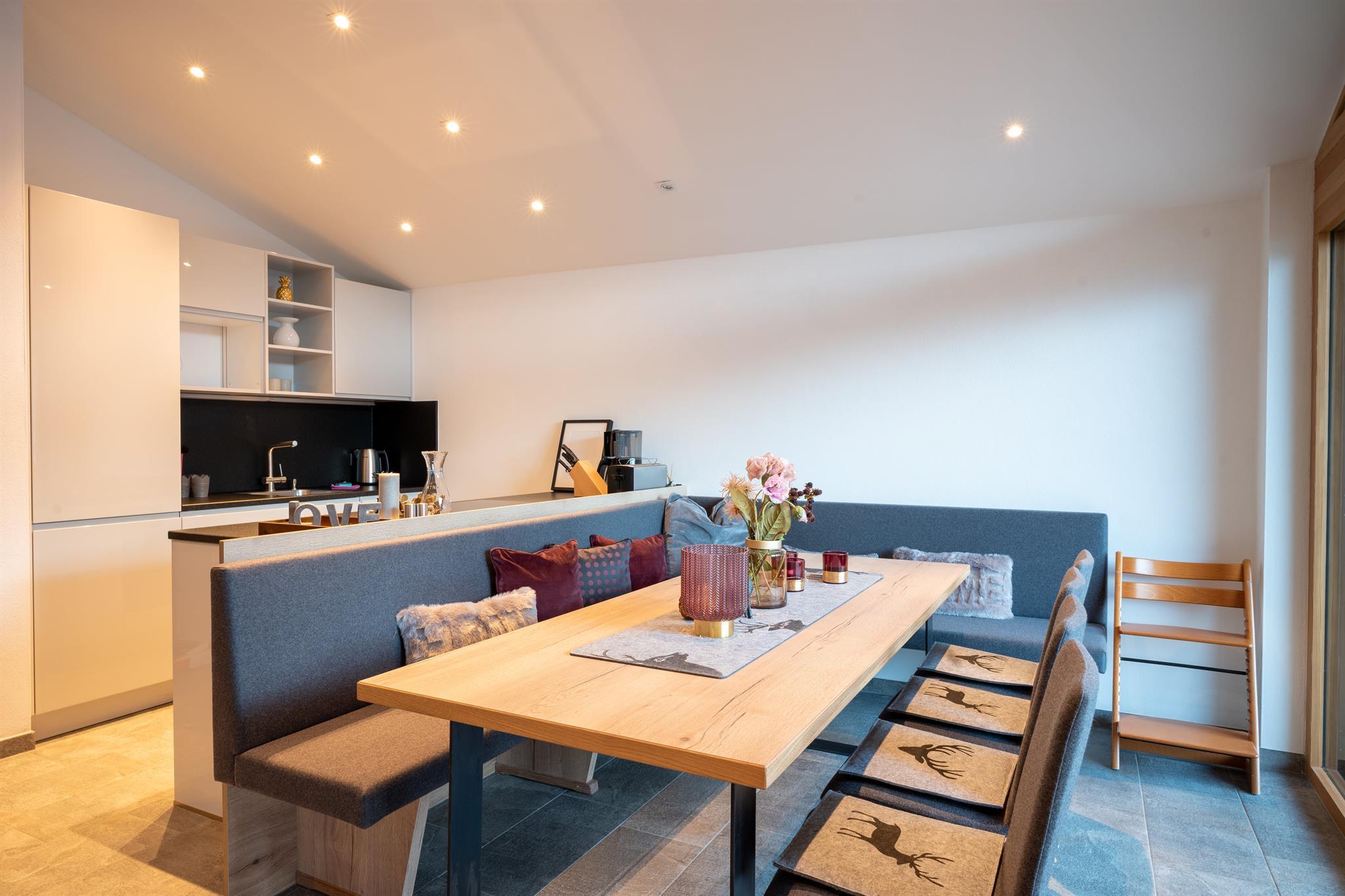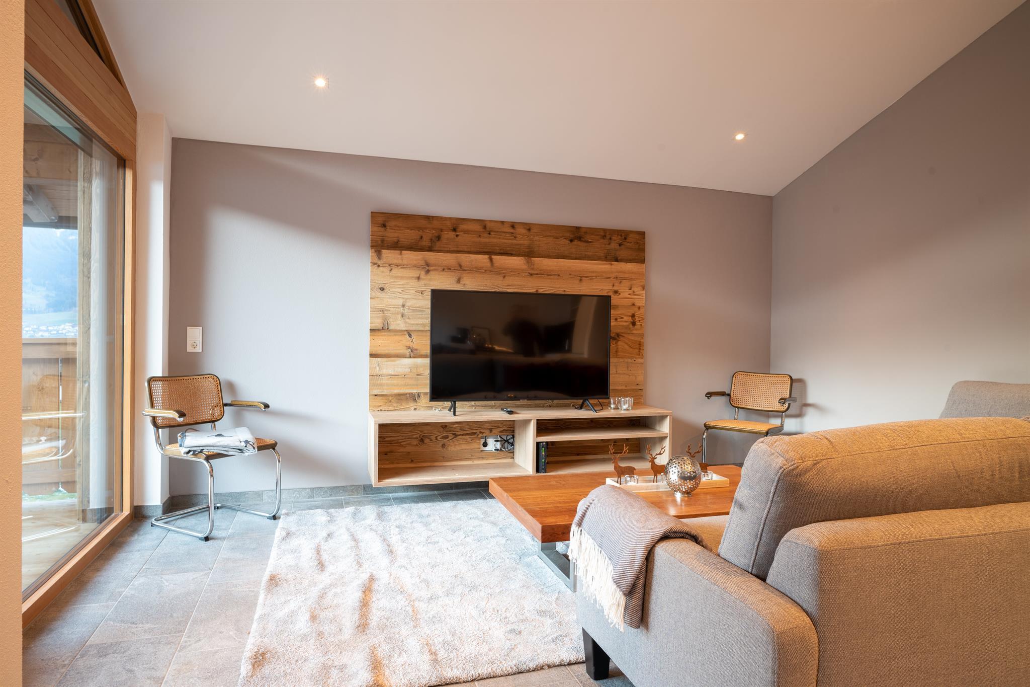 Auf 250m² finden sich 4 Schlafzimmer, insgesamt 3 Badezimmer, sowie eine großer Wohnbereich mit angrenzender Terrasse, die Sommer wie Winter zum Verweilen einlädt. Im Elternzimmer, welches mit gemütlichen Holz eingerichtet ist, befindet sich je ein großes Kingsize-Doppelbett. Das Kinderzimmer ist mit zwei Einzelbetten ausgestattet. Ebenerdig gibt es direkten Zugang zum Garten, mit Grillstelle und Sitzgelegenheit für laue Sommerabende. Das Highlight ist der private Wellnessbereich mit Sauna und einem weiteren Badezimmer!