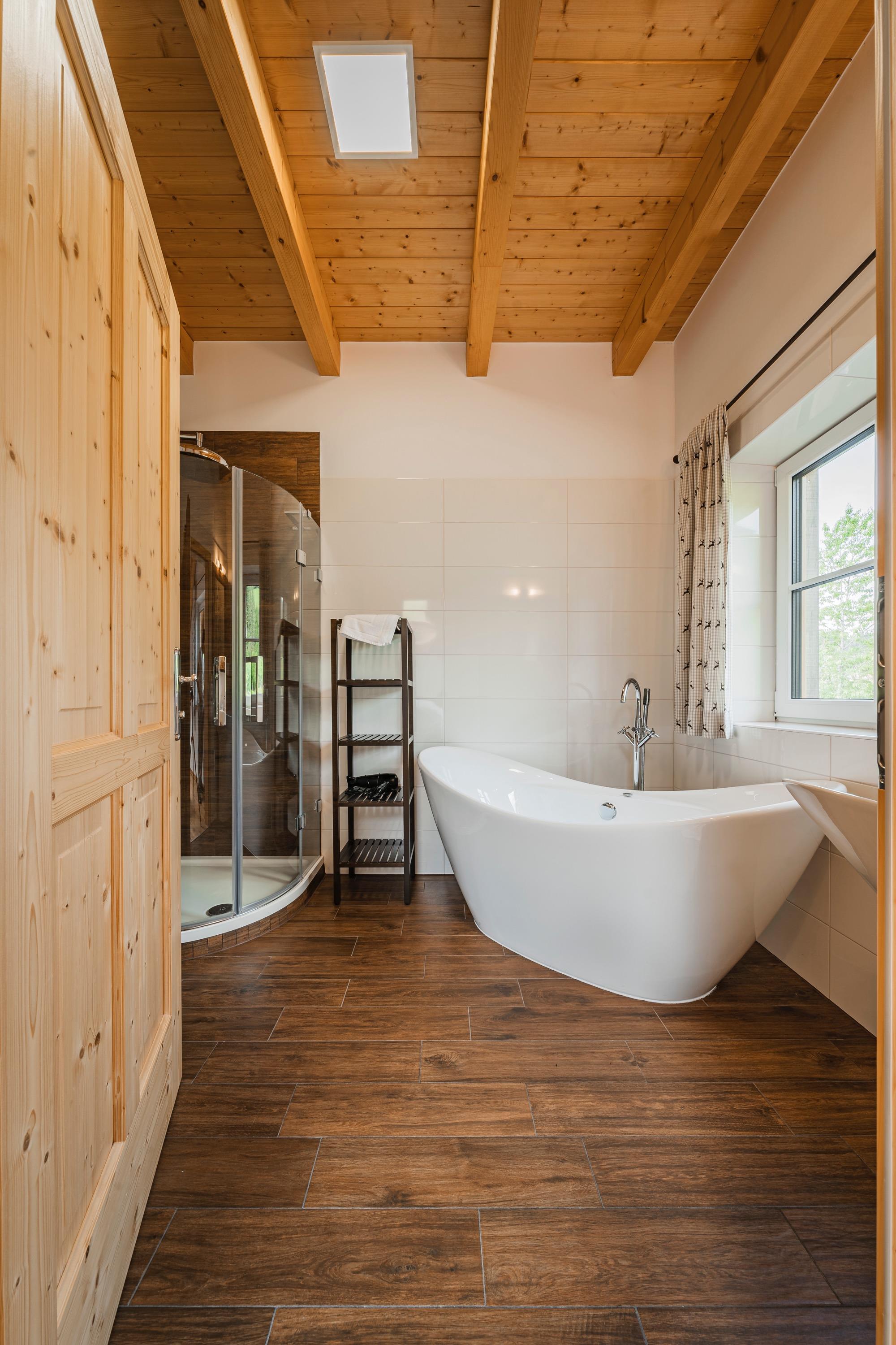 Ebenso stehen Ihnen noch zwei gemütliche Schlafzimmer zur Verfügung, wobei eines davon mit Ausgang auf den Balkon ausgestattet ist und das andere mit einem eigenen Badezimmer mit Dusche und freistehender Badewanne (en Suite). Auch ein weiteres Duschbadezimmer mit Wc. ist vorhanden.