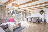 Zwei Stile sind kombiniert: Der Bauerntisch und die Holzsessel identifizieren Küchen- und Essbereich zu typischer Ländlichkeit, der Wohnbereich ist im angesagten New-Country-Stil gehalten. Dem Gast stehen 3 Schlafzimmer, 3 Badezimmer, eine eigene Hüttensauna und eine schöne Sonnenterrasse zur Verfügung.