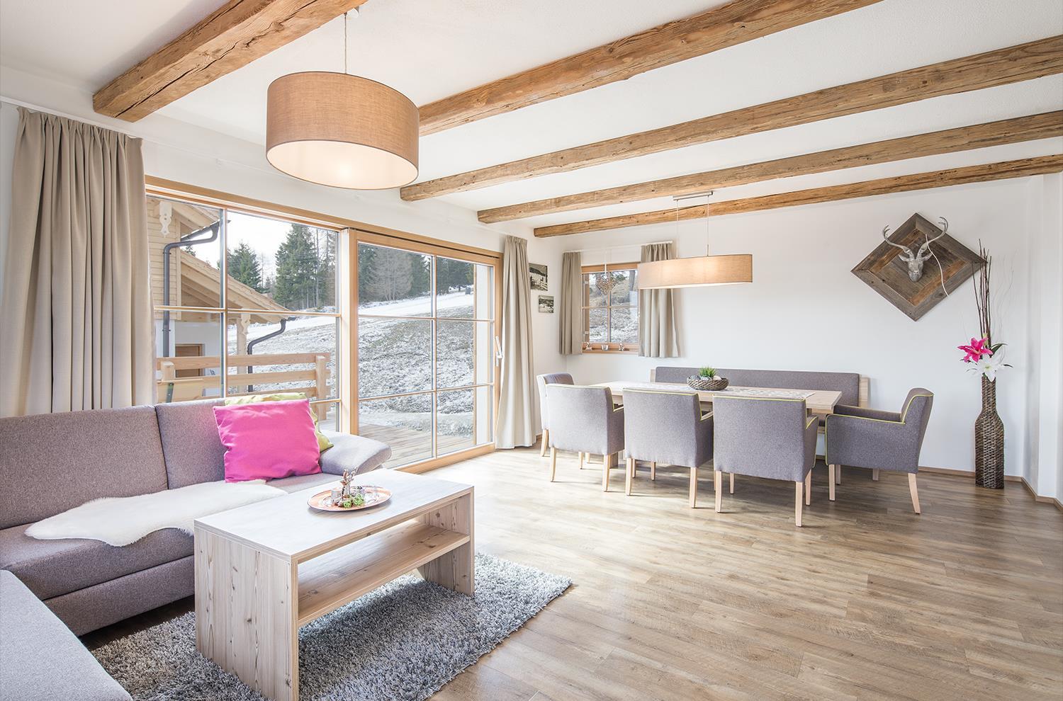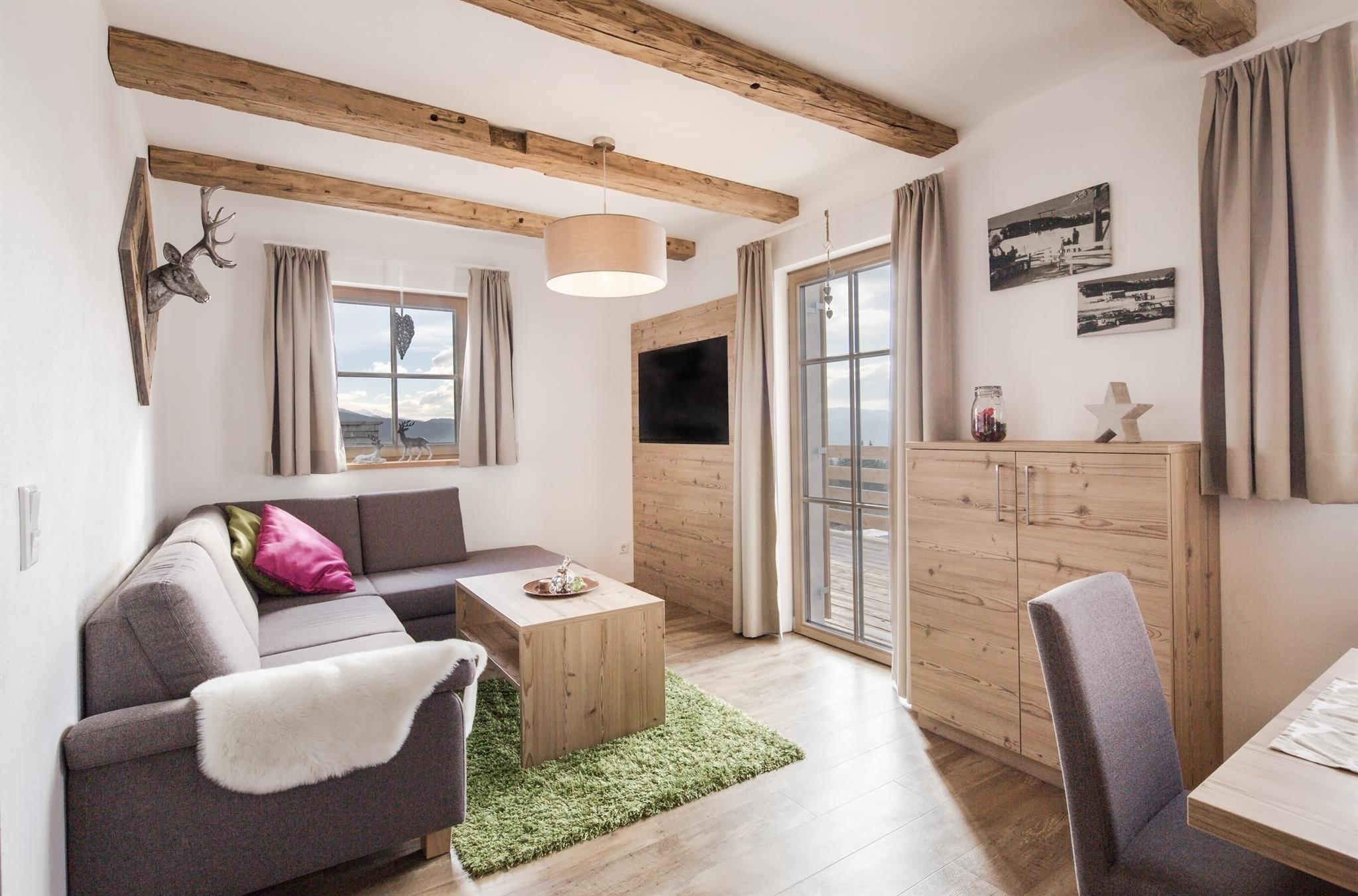 Typ RuheZeit ist die traditionelle, ländliche Variante. Zeitlos alpiner Charme durch rustikale Möbel und Accessoires mit regionalgeschichtlichen Bezug vor allem im offenen Wohnbereich.