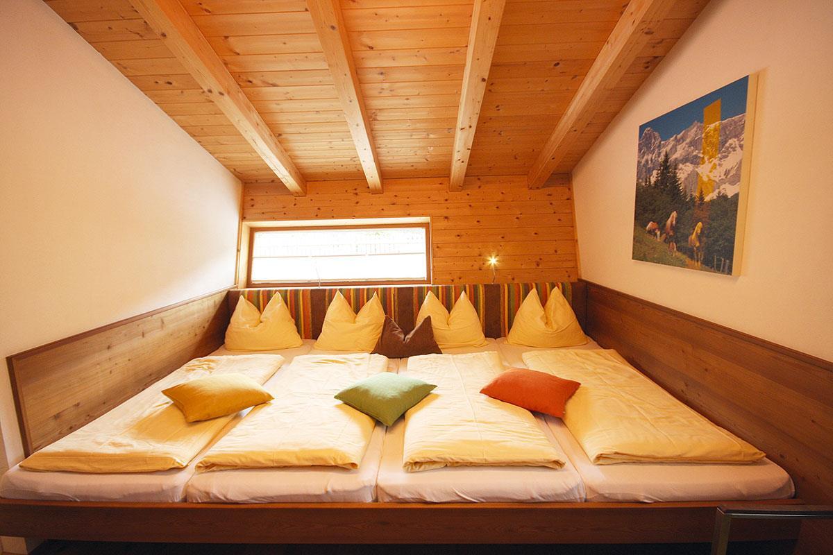 220m2, Alpin Loft mit Küche, Alpin Atrium, 4 Schlafnester mit Dusche/WC, Sonnenraum mit Sauna und Doppelbett. Basismietpreis bei Belegung bis 12 Personen, Maximalbelegung 18 Personen mit Extrazimmer bis 24 Personen. Die Küche ist großzügig mit Porzellan, Gläsern und Besteck für 24 Personen ausgestattet. Hobbyköche finden alles gängigen Küchengeräte und eine breite Palette an Pfannen und Töpfen.