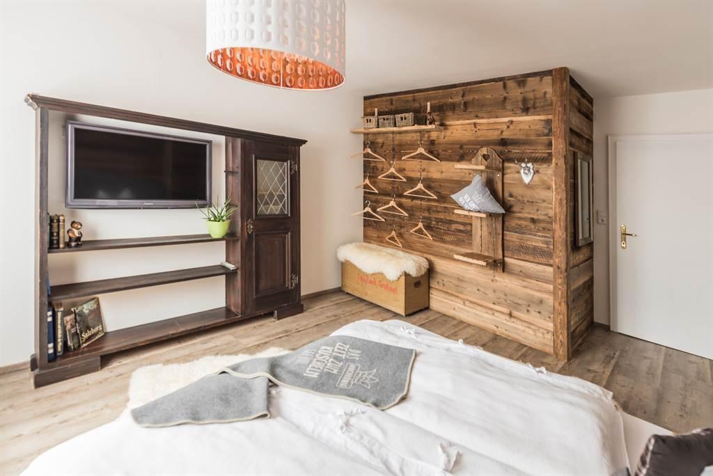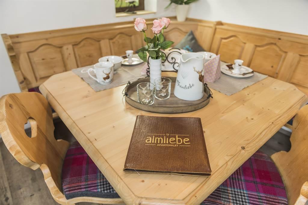 Das Apartchalet Almliebe verfügt über: - 2 Schlafzimmer mit modernen, hochkomfortablen Boxspringbetten und Flat-TV - Bad mit Dusche, Infrarotkabine, WC und Haarfön - Voll ausgestattete Küche mit rustikaler Sitzecke und Wohnzimmer mit offenem Kamin