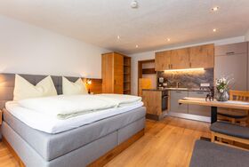 Neues und Top eingerichtetes Studio mit urig moderner Ausstattung. Buchbar für 1- 3 Personen mit komfortablem Doppelbett, Liegecouch, Küche, Dusche/WC, Kabel TV, Radio, freies W-LAN und Balkon mit Balkonmöbel.