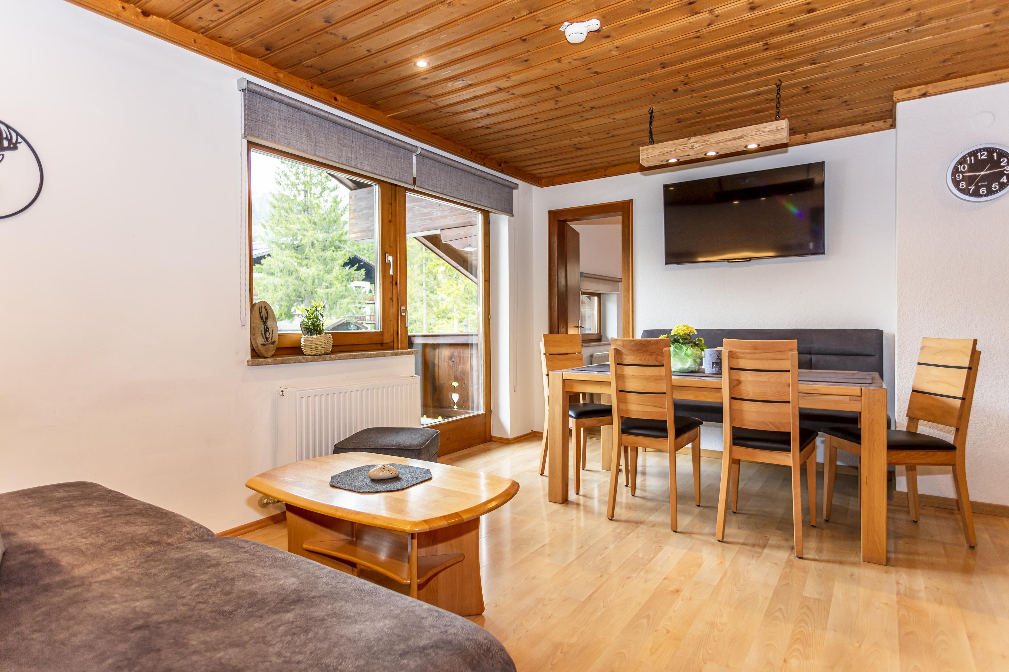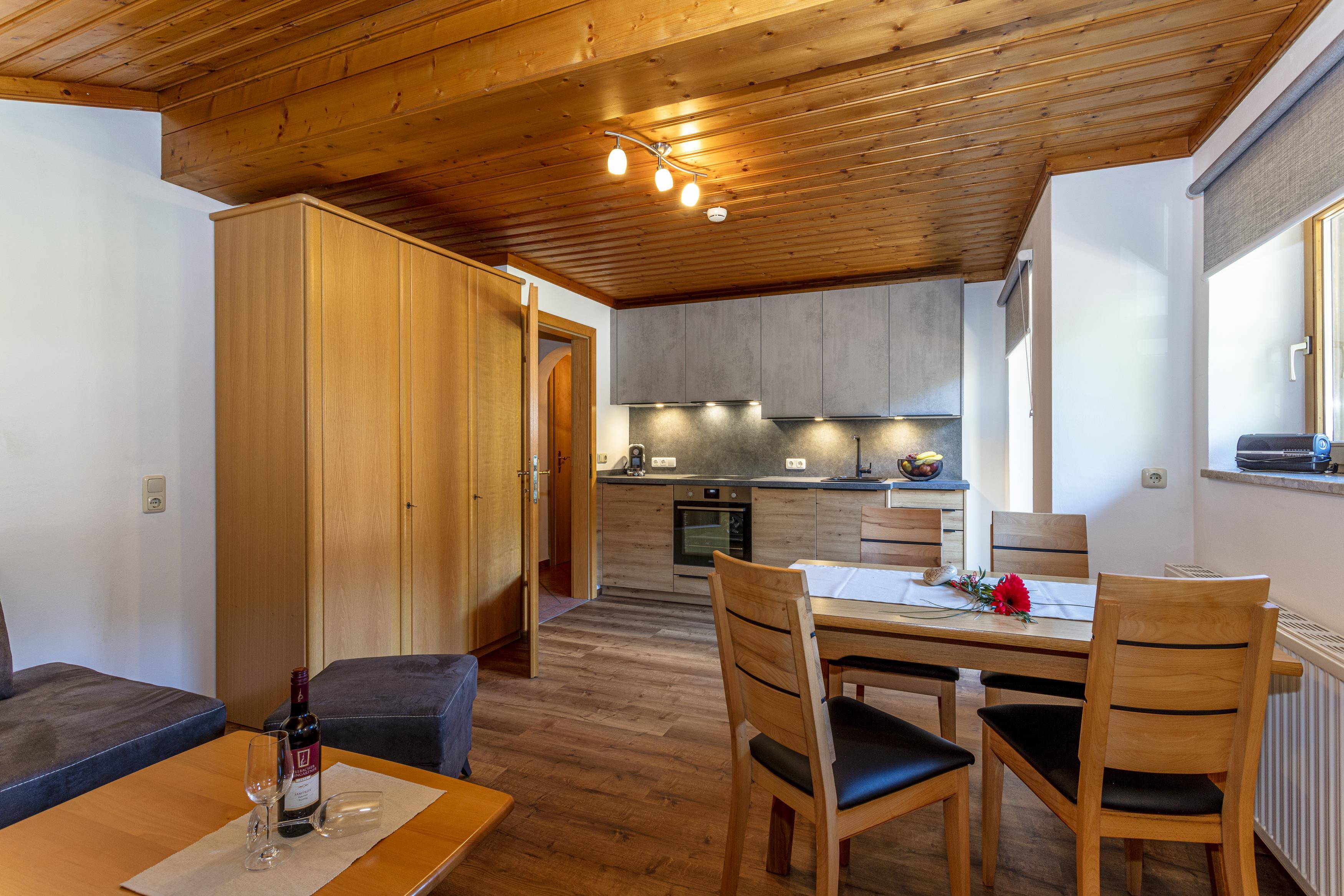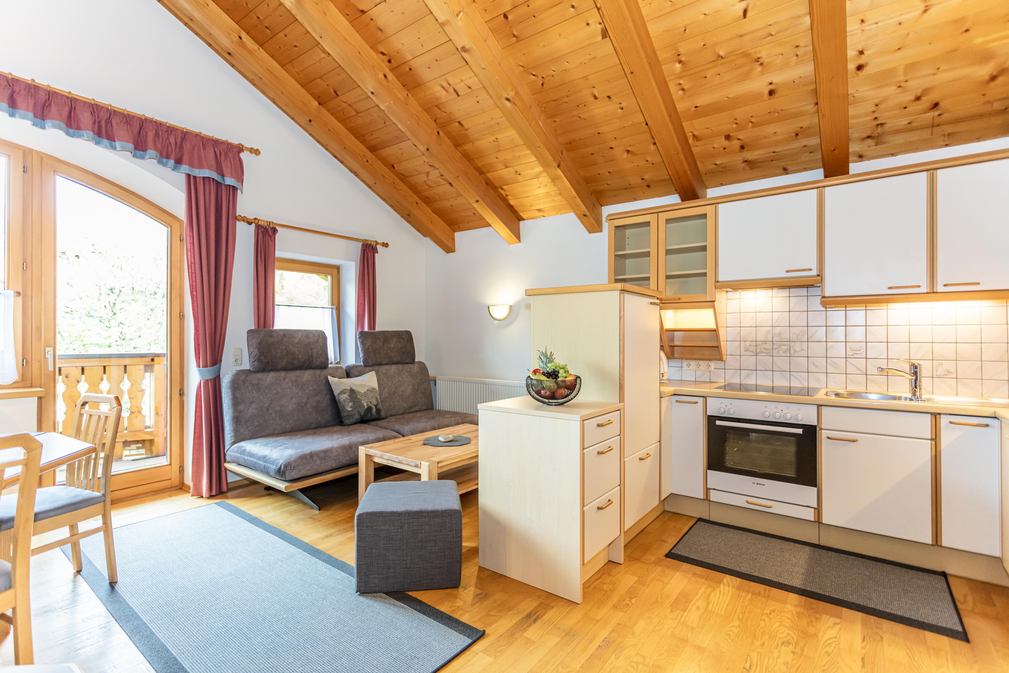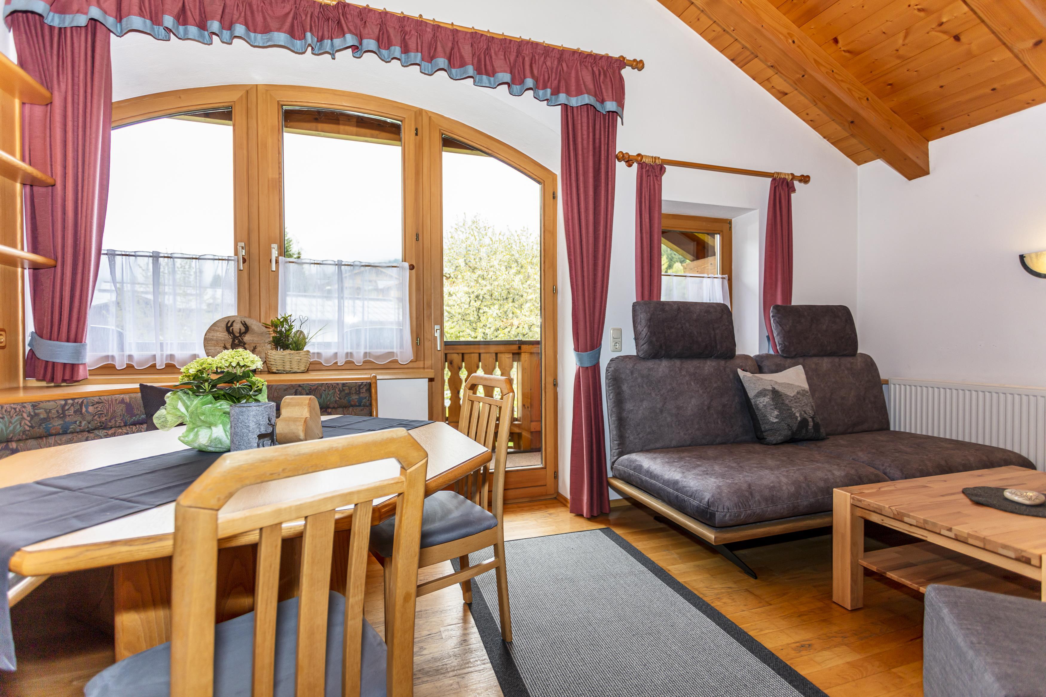 Komfortable Ferienwohnung für 2-5 Personen,gemütliche Wohnatmosphäre durch sichtbaren Dachstuhl und Kachelofen,geräumige Wohnküche mit runder Sitzecke und Couch,2Schlafzimmer,Dusch-Badewanne,separate Toilette,Kabel TV,Radio und eigenen Balkon mit Balkonmöbel. Sollten Sie zusätzliche Schlafplätze benötigen, können Sie hier ein Doppelzimmer oder Dreibettzimmer dazu buchen.
