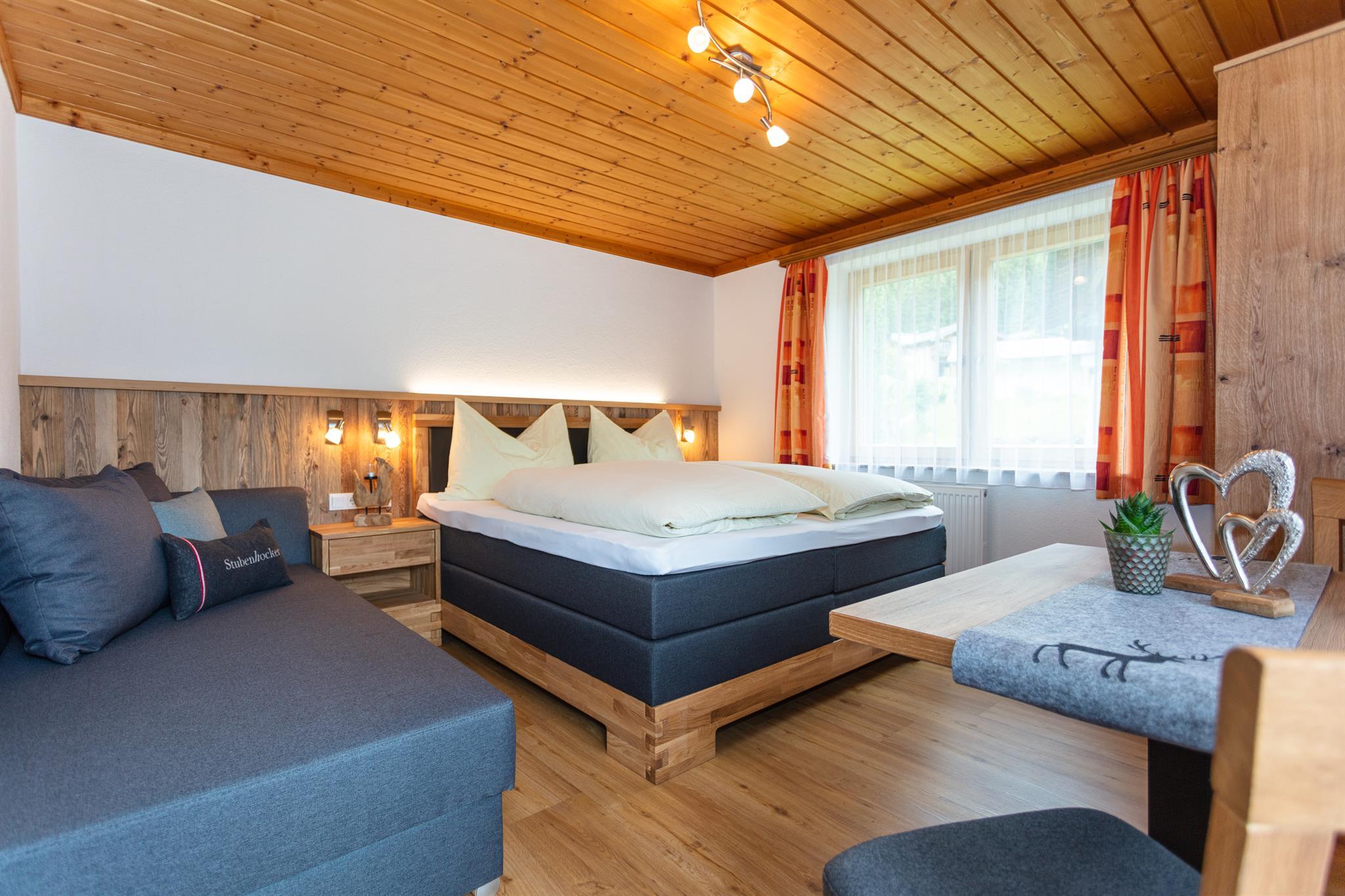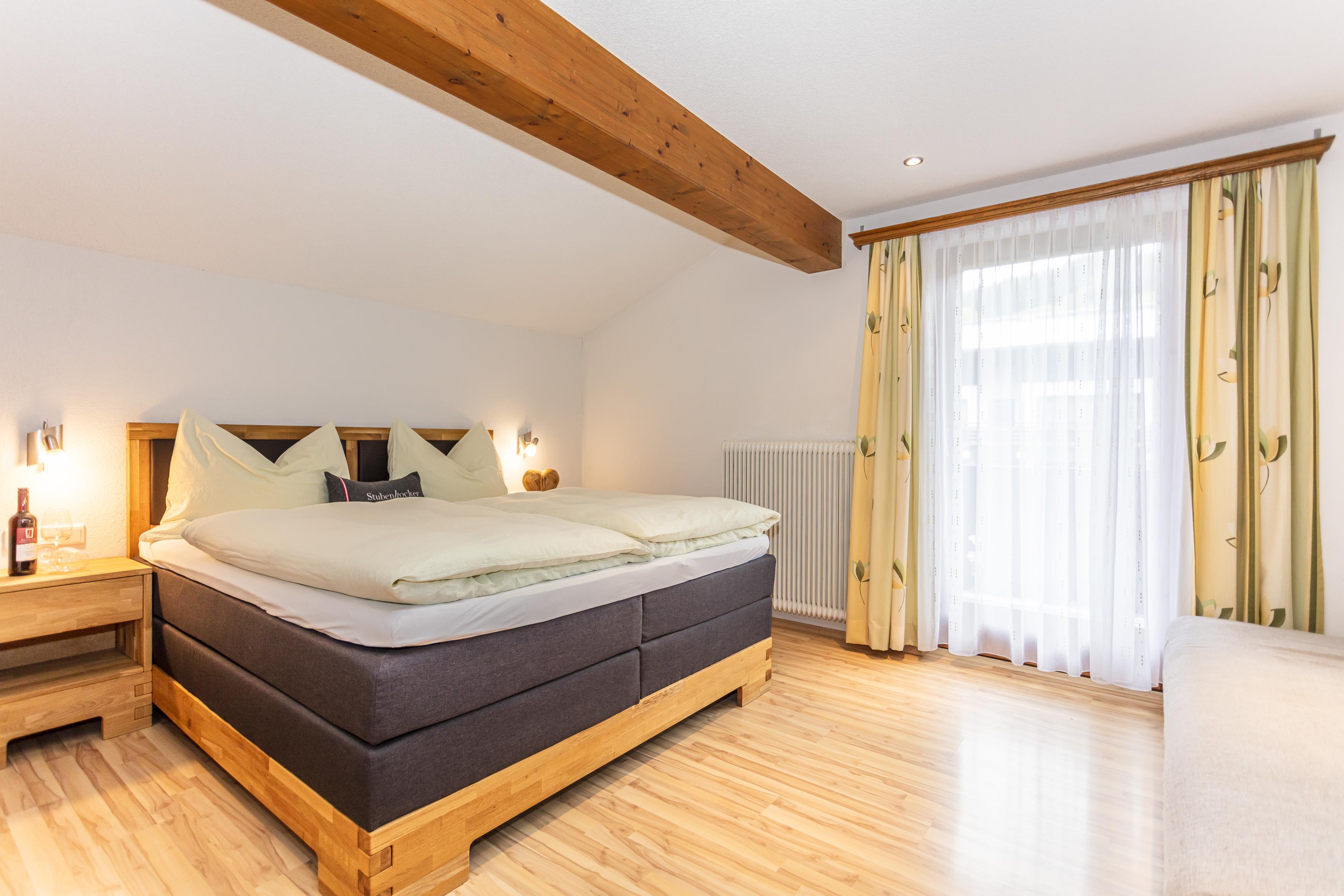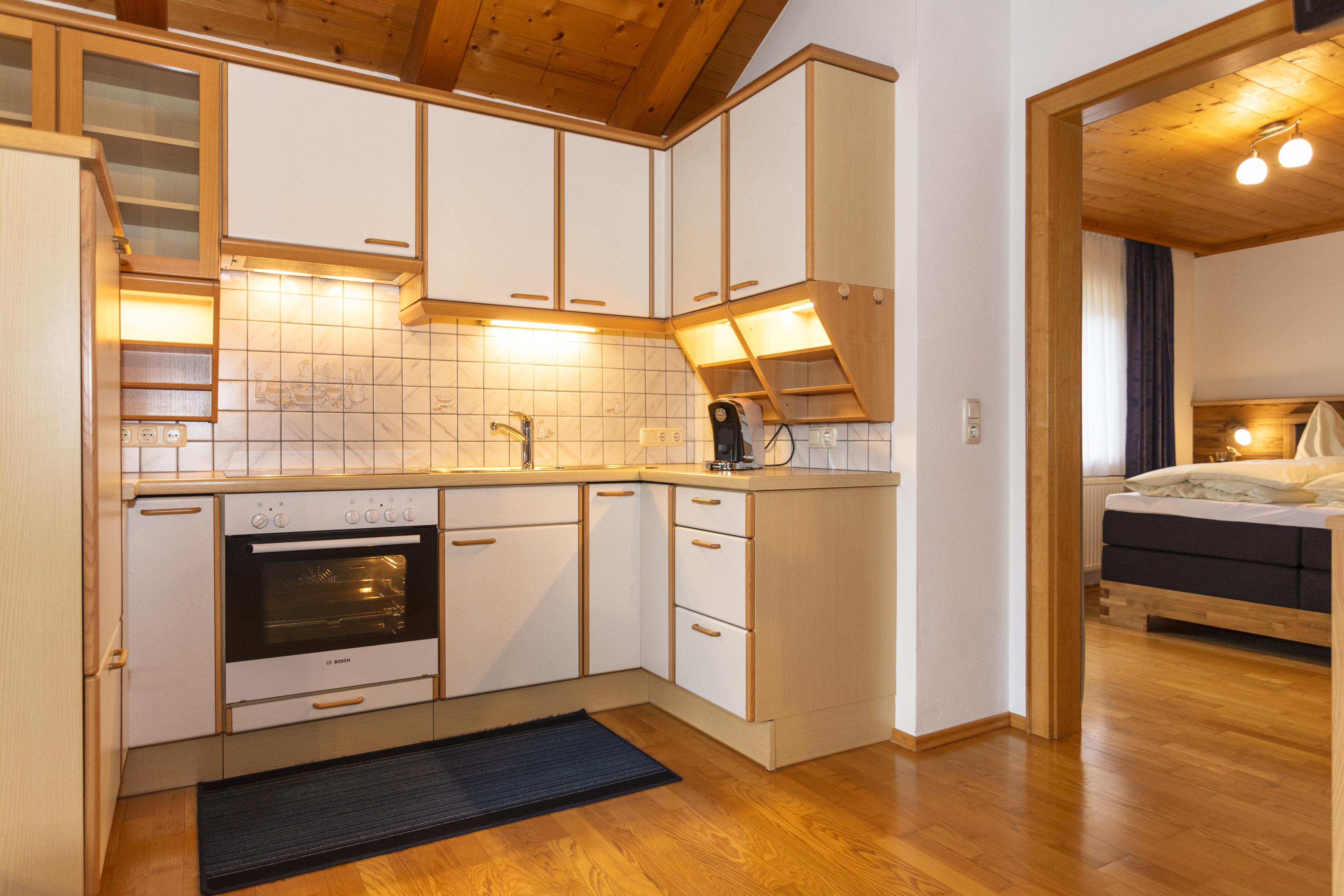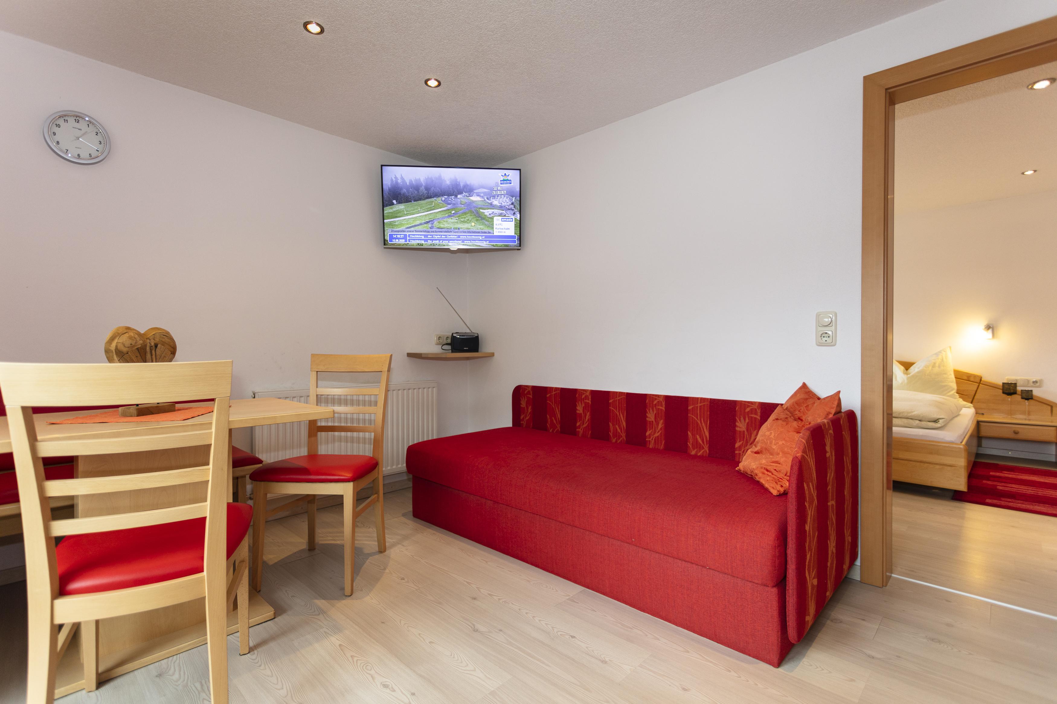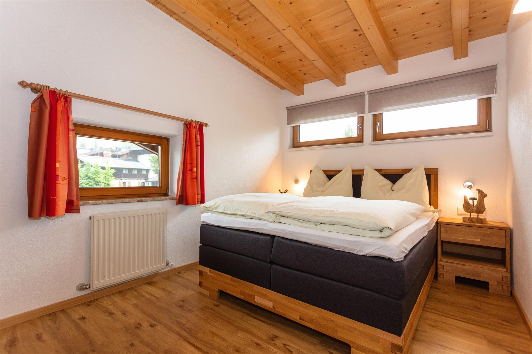 Komfortable Ferienwohnung für 2-5 Personen,gemütliche Wohnatmosphäre durch sichtbaren Dachstuhl und Kachelofen,geräumige Wohnküche mit runder Sitzecke und Couch,2Schlafzimmer,Dusch-Badewanne,separate Toilette,Kabel TV,Radio und eigenen Balkon mit Balkonmöbel. Sollten Sie zusätzliche Schlafplätze benötigen, können Sie hier ein Doppelzimmer oder Dreibettzimmer dazu buchen.