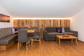 Das Appartement Lebensgfühl befindet sich im 2. Stock mit kleinem Balkon mit Blick auf den Schneeberg und die Mandelwände. Es verfügt über ein Schlafzimmer mit einem Doppelbett und einem Einzelbett, einem Wohnzimmer mit gemütlicher Sitzecke mit Esstisch und einer hochwertigen ausziehbaren Schlafcouch, vollausgestattete Küchenzeile inkl. Geschirrspüler, Mikrowelle, Kaffeemaschine, Kühlschrank, Wasserkocher…