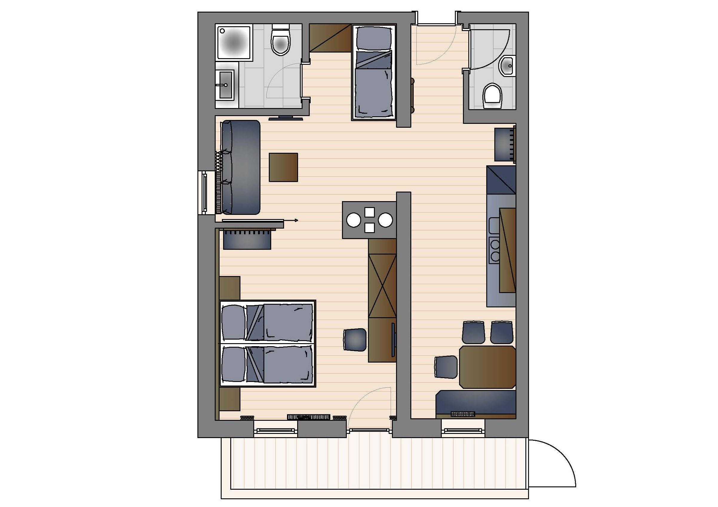 Das Appartement Gipfelglanz befindet im 2. Stock der Balkon bietet Aussicht auf die gesamte Bergwelt. Es verfügt über ein getrenntes Schlafzimmer, einen Wohnessbereich mit Sitzecke und Esstisch, ausziehbarer Schlafcouch und einem Stockbett, vollausgestattete Küche inkl. Geschirrspüler, Mikrowelle, Kaffeemaschine, Kühlschrank, Wasserkocher…