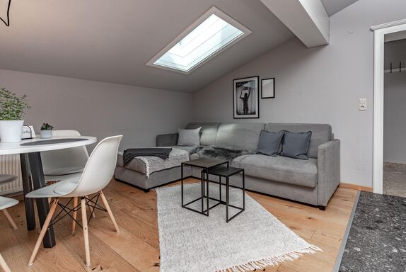 Das Appartement 5 ist unser kuscheliges, kleines „Refugium, ideal für 2 Personen. Wenn man möchte, kann aber auch die ausziehbare Couch im Wohnzimmer z.B. für 1-2 Kleinkinder genützt werden. Vom Südbalkon hast du einen herrlichen Bergblick.