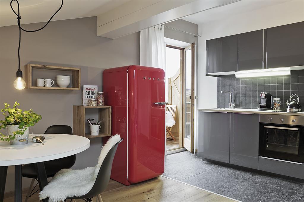 • voll ausgestattete Wohnküche, SMEG-Kühlschrank, E-Herd mit 2 Platten, Backofen, Toaster