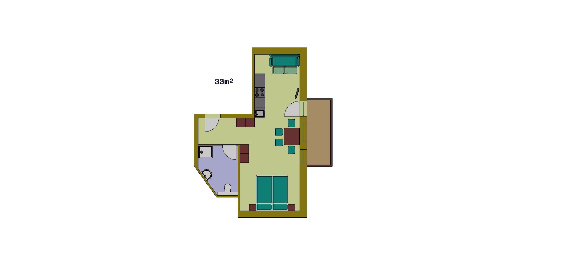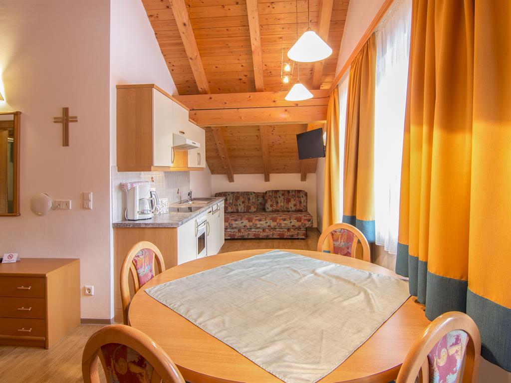 Appartement Typ 4 ist nach Osten ausgerichtet und besteht aus einem gemütlichen Wohn-Schlafraum mit einer gut ausgestatteten Küche mit Speisegruppe und Flat-TV, Doppelbett, Doppelcouch, Bad-WC und sehr schönen Balkon der zum Wohlfühlen einlädt.