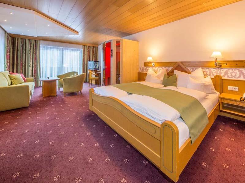 Hotelsuite Edelweiss mit Südbalkon - mit Infrarotkabine und Zirbenlüfter. Mit 36m² - auch als 3-Bett bzw. 4-Bett-Zimmer möglich. Neu renoviert, sehr gemütlich, mit Flat-TV, Gratis-W-Lan, Dusche und sep. WC. Weitere Infos unter www.alpenhof.com