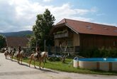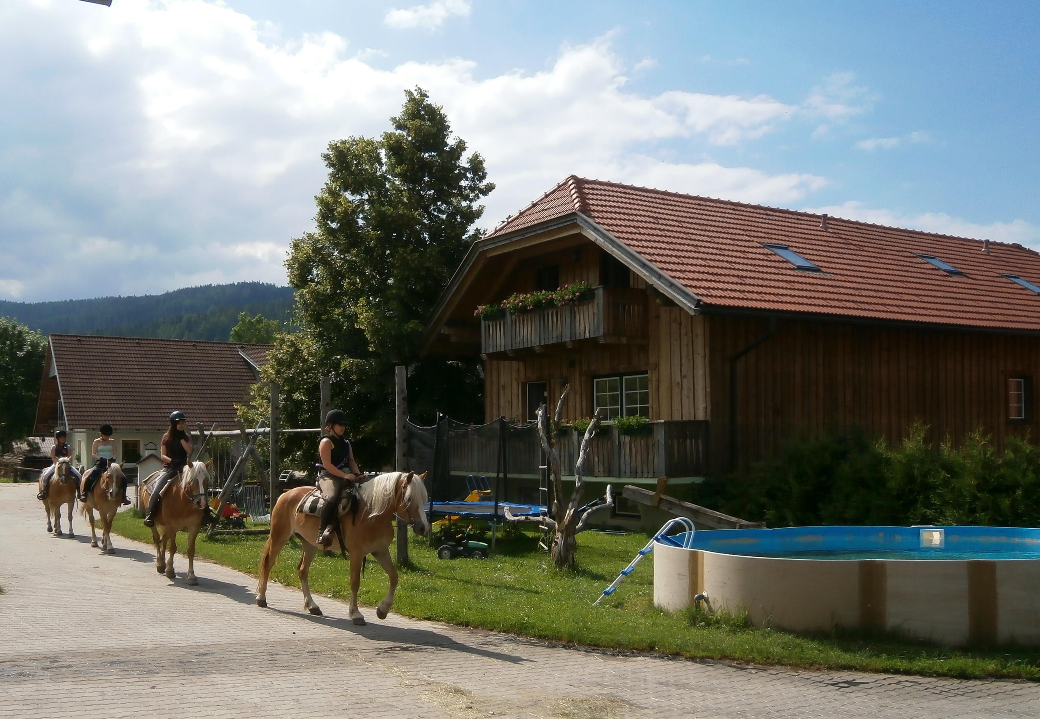 Familienfreundlicher Bauernhof mit 20 Pferden, Kühen, Schafen, Schweinen, Hasen, Hühnern u. Katzen. Kinder dürfen mitin den Stall kommen und beim Versorgen der Tiere mithelfen. Reiten für Anfänger und Fortgeschrittene in den Sommerferien täglich, im Frühling und Herbst nach Vereinbarung. Spielplatz mit Trampolin, Rutsche, Wippen, Schaukeln und Pool (4 x 2 m, 120 cm tief). Grillmöglichkeit. Wanderwege vom Haus weg.