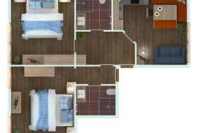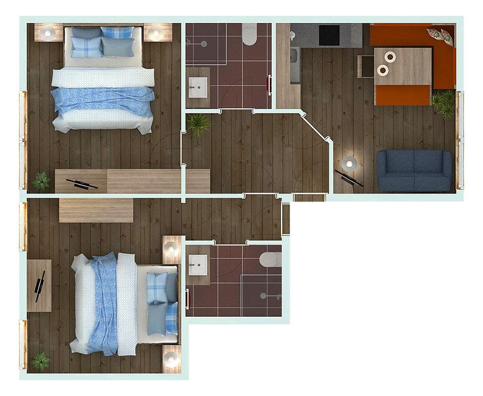 Das Appartement ist mit Wohnküche, 2 Schlafräume, 2 Bäder ausgestattet. In der Wohnküche finden Sie: Backofen, Elektroherd, Geschirr vorhanden, Geschirrspülmaschine, Kabelfernsehen, Kaffeemaschine, Kühlschrank mit Gefrierfach, Mikrowelle, moderne Möbelierung, Tisch- und Küchenwäsche, Toaster, Wasserkocher, W-LAN Schlafraum: Bettwäsche vorhanden, Doppelbett ( 1 Bett/ 2 Matratzen), Kabelfernsehen, neuwertiges Zimmer, ohne Teppich, Zentralheizung Badezimmer: Handtücher vorhanden, Haarföhn Wohn-/Schlafräume getrennt, Verbindungstür