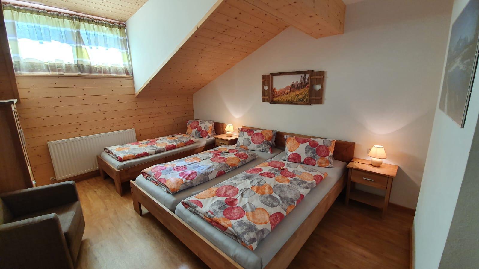 Appartement mit 3 Schlafzimmer, Balkon, Wohnküche mit Kochzeile, Holzofen, WC, 2 Badezimmer mit Dusche, Infrarotkabine, Vorraum, Abstellraum, Radio und Sat-TV.