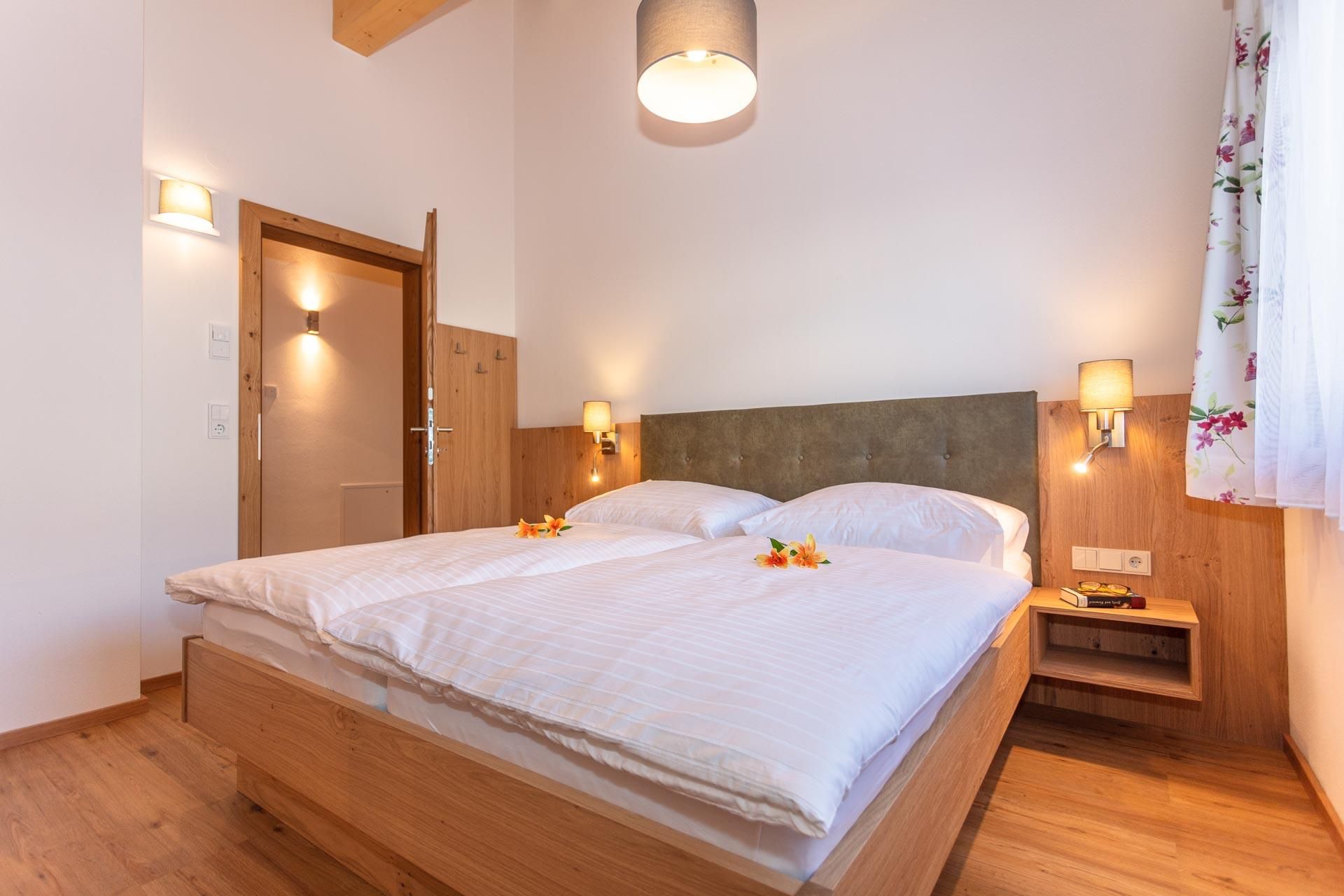 Die Ferienwohnung verfügt über 2 Schlafzimmer für 2 Personen, 2 Bäder mit Dusche und WC, Wohnküche mit Sitzecke und Couch mit Bettfunktion für 2 Personen, Balkon, 1 Stellplatz für 1 Auto im Carport, kostenloses Wifi-Internet. Die Ferienwohnung ist ausgestattet mit Föhn, Safe, Backrohr, Geschirrspüler, Cerankochfeld, Filter-Kaffee-Maschine, Wasserkocher,.. etc.