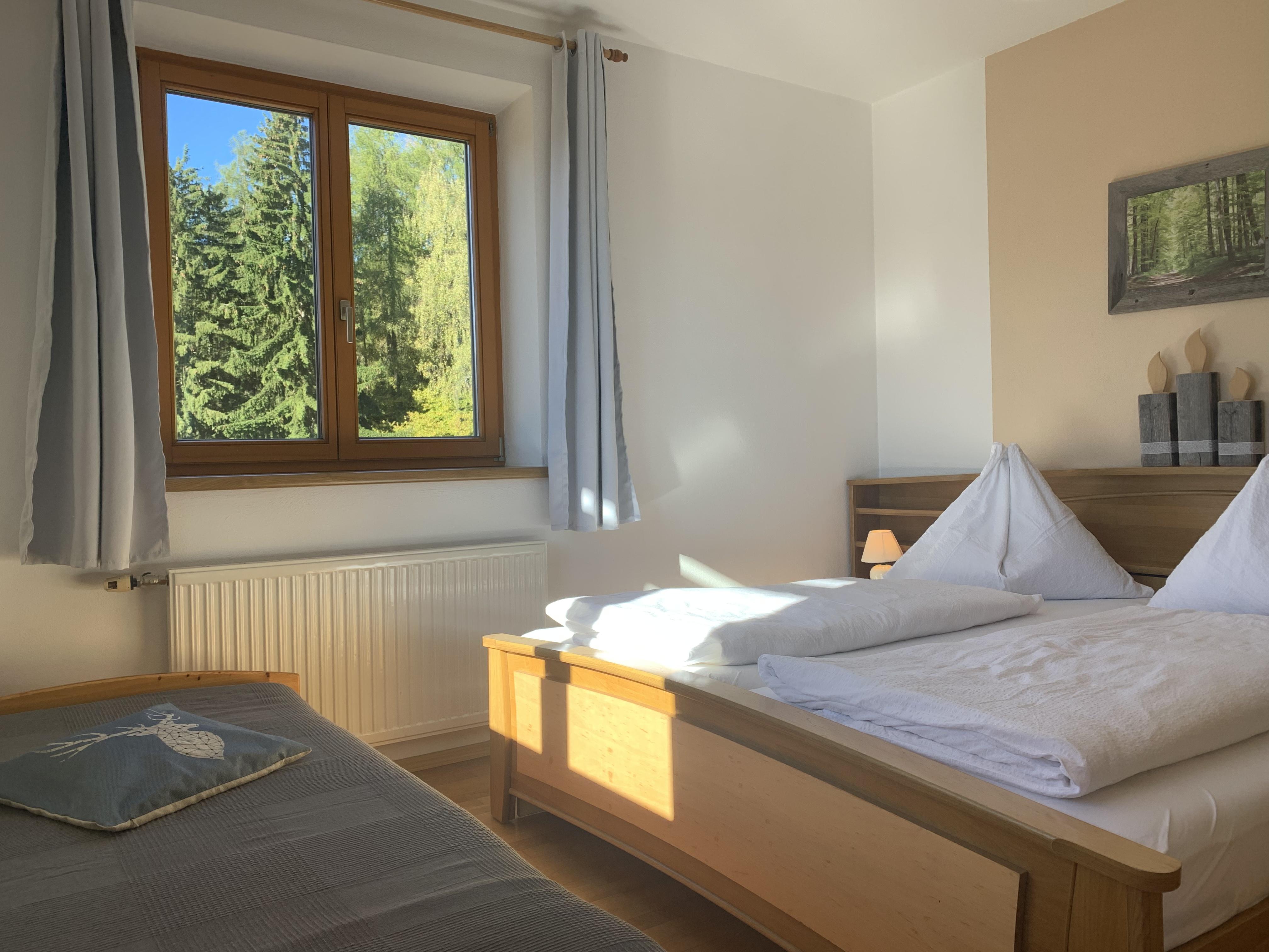 2 getrennte Schafzimmer ( 1. Zimmer mit Doppelbett und Einzelbett; 2.Zi mit Doppelbett ),