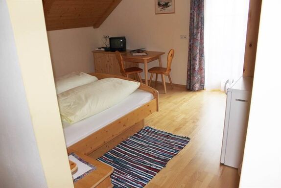 Doppelzimmer 3: Geräumiges Doppelzimmer mit Bad/Dusche/WC, extra Vorraum, Balkon, Föhn auf Anfrage, Kühlschrank, Sitzgruppe, Sat-TV, Radio.