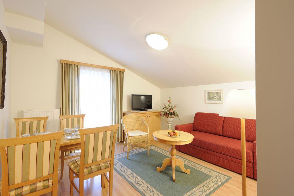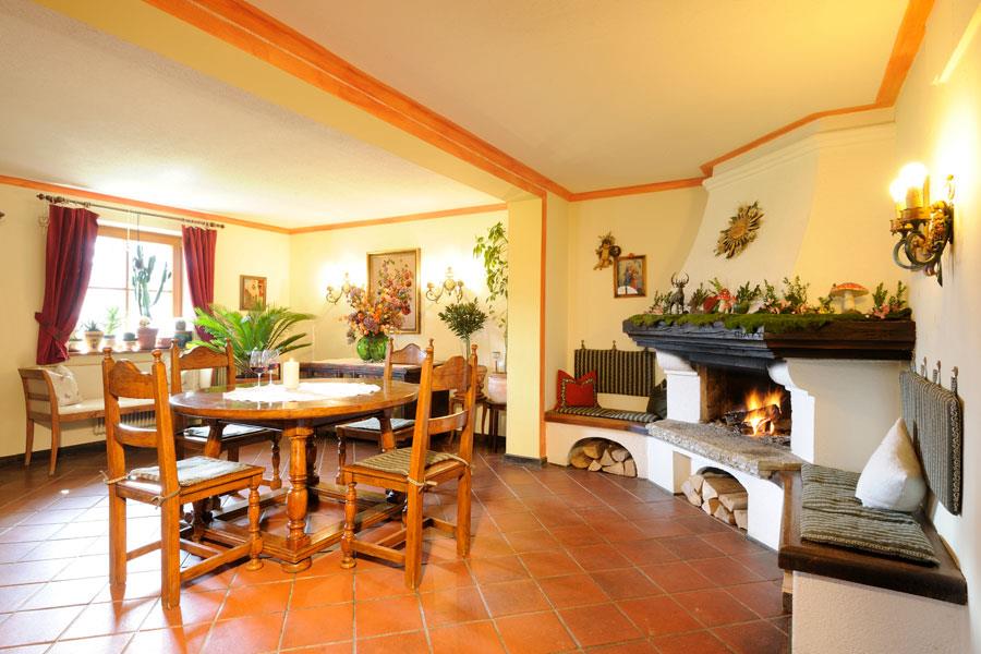 Ferienwohnung mit Blick auf einen unserer Hausberge den Ellmaustein mit Lage zum Garten. Voll ausgestattet mit Schlafraum,Wohnschlafraum, Küche,Badewanne/WC,Vorraum,Balkon, Zimmer Safe und SAT-TV.
