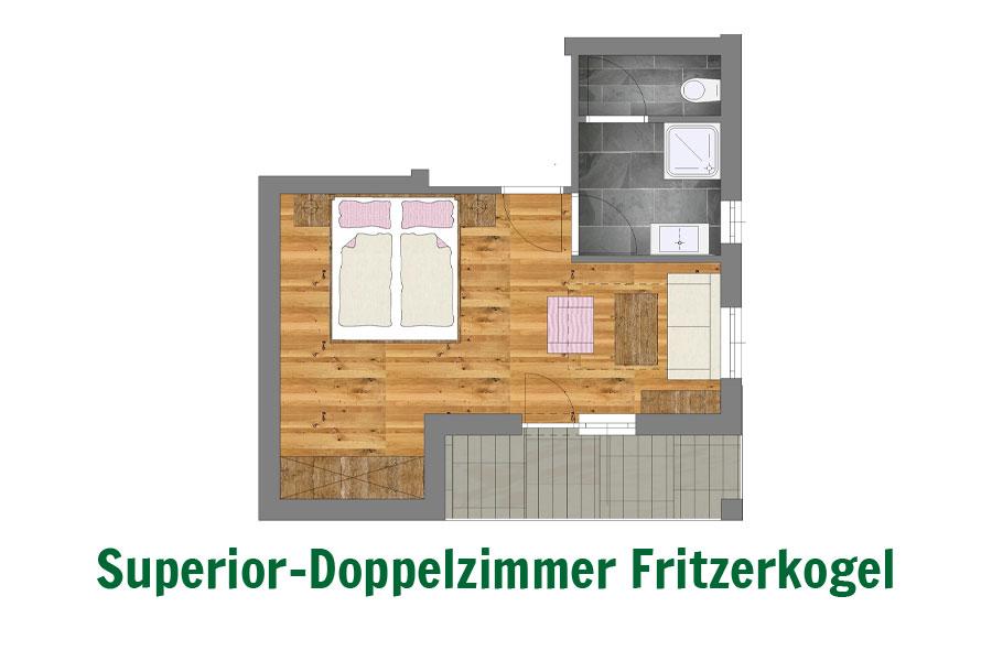 Die Hotelstudios Fritzerkogel sind im Mittelteil des Gebäudes über dem Haupteingang, errichtet im Jahr 1999, geräumig mit Sitzecke und eigenem abgeschlossenem Balkon.