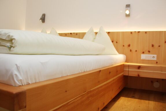 Individuelle Zirbenholzmöblierung, Information rund um die Zirbe und ihre schlaffördernde Wirkung, Zirbenspankopfkissen, Zirbenspäne und Zirbenöl für das Raumklima und eine Kostprobe von Österreichischem Zirbenschnaps.