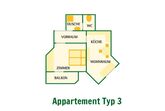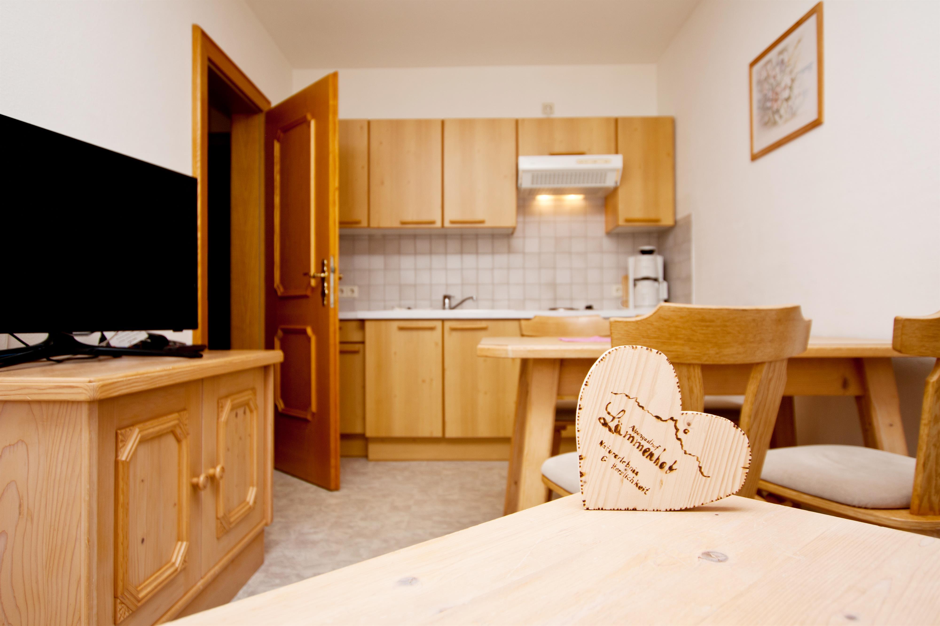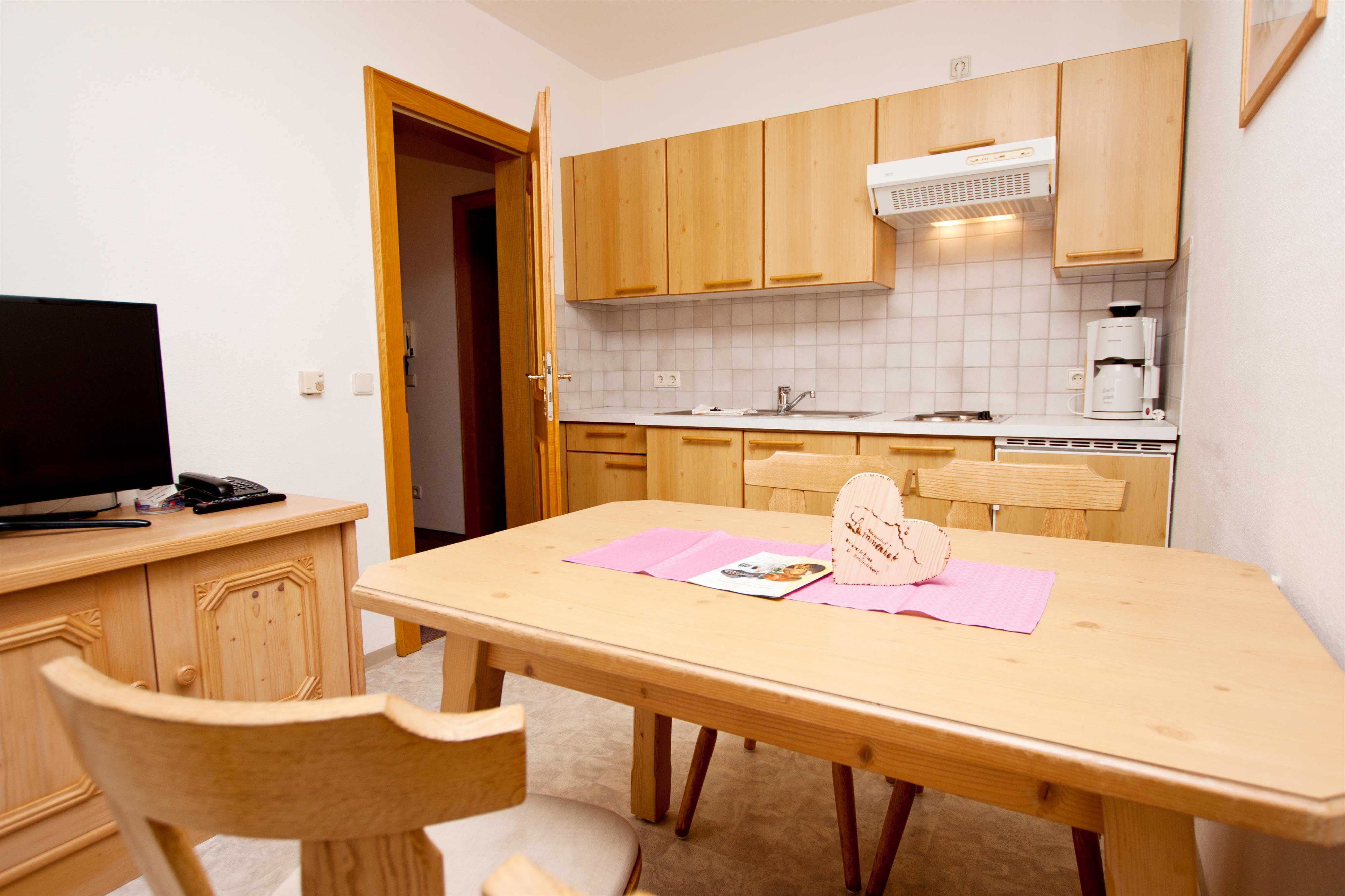 Die Appartements sind im unmittelbar anliegenden Nebenhaus, erbaut in den 90er Jahren, hell eingerichtet mit Voglauer Möbeln. Bodenbeläge teilweise mit Teppich. Appartement mit Schlafzimmer, Küche mit Esstisch und Wohnbereich mit Doppel-Ausziehcouch mit ca. 35 m² für bis zu 2 Erwachsene und 2 Kinder im 1. Stock Mit Balkon und Blick Richtung Süd-Osten Dusche, WC extra, Haarfön Kabel-LCD-TV , Telefon, WLAN