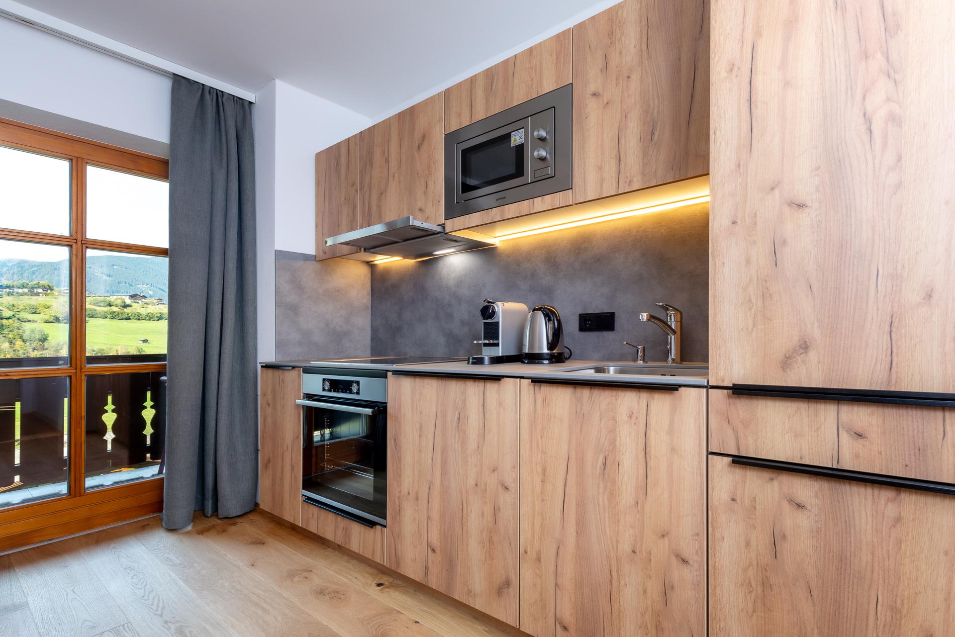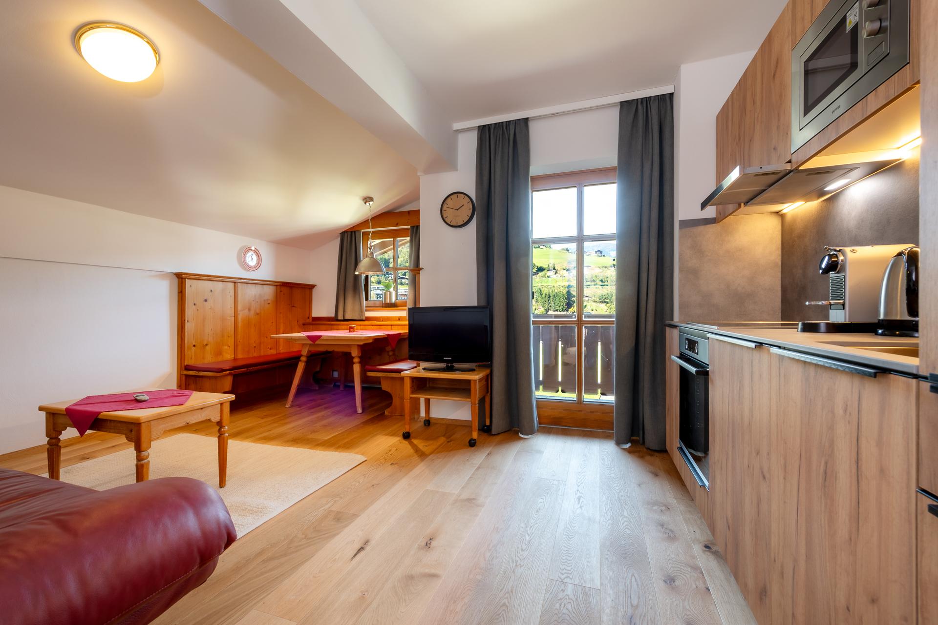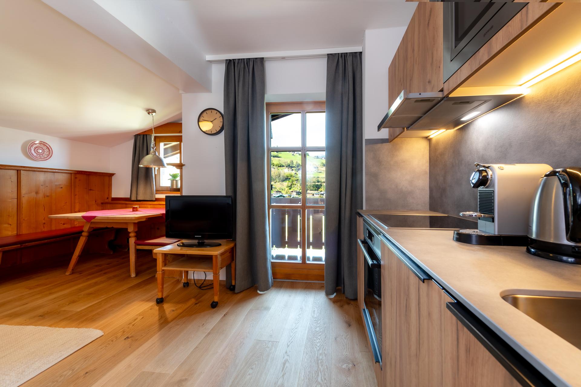 • Gemütlicher Wohn- und Essbereich mit sehr gut ausgestatteter Küche (Geschirrspüler, Nespresso Kaffeemaschine, Filterkaffeemaschine, Herd mit Ceran Kochfeld und Backofen, Wasserkocher, Mikrowelle)