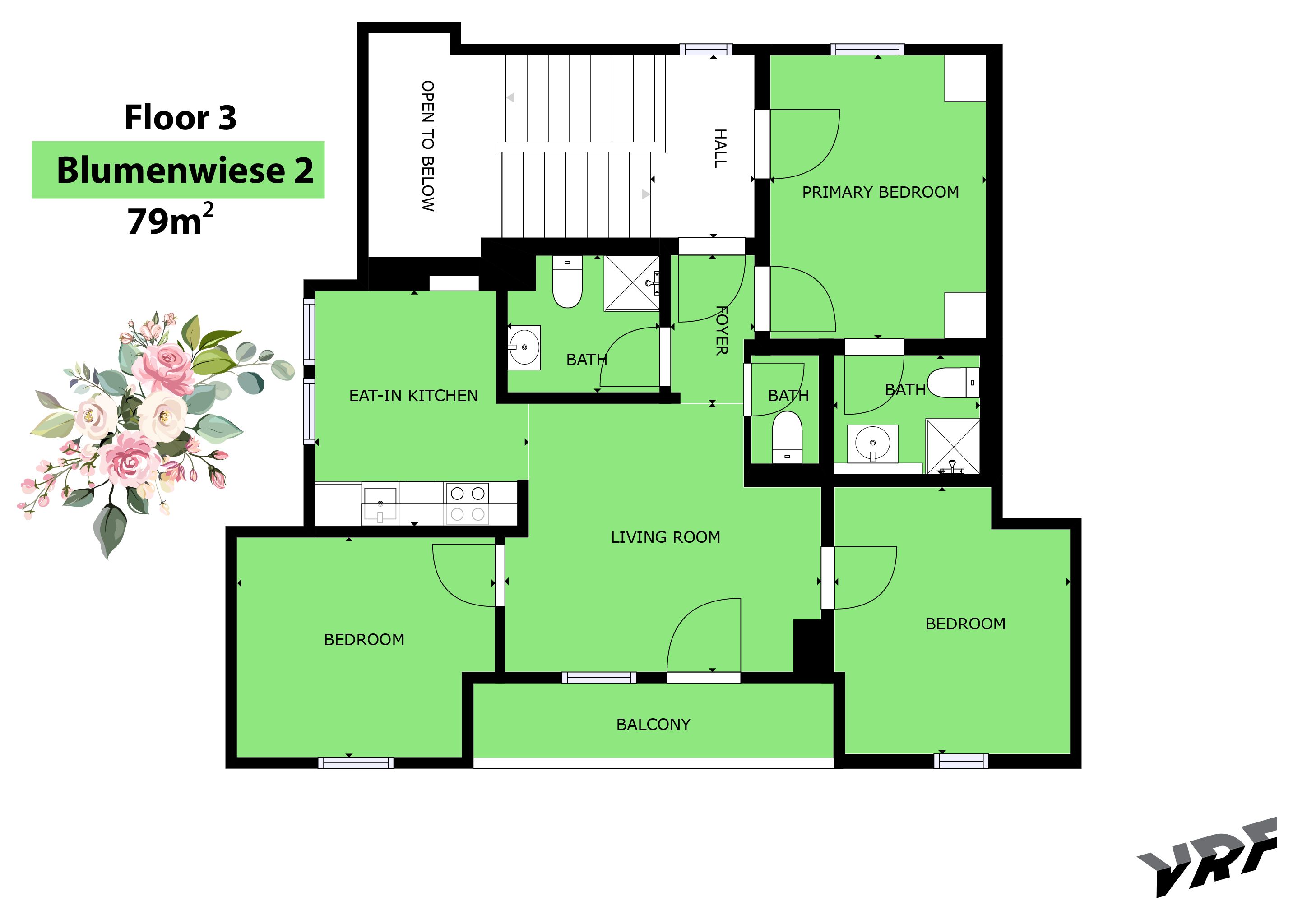 Appartement Blumenwiese 2 im Obergeschoß mit Balkon - 79 m²