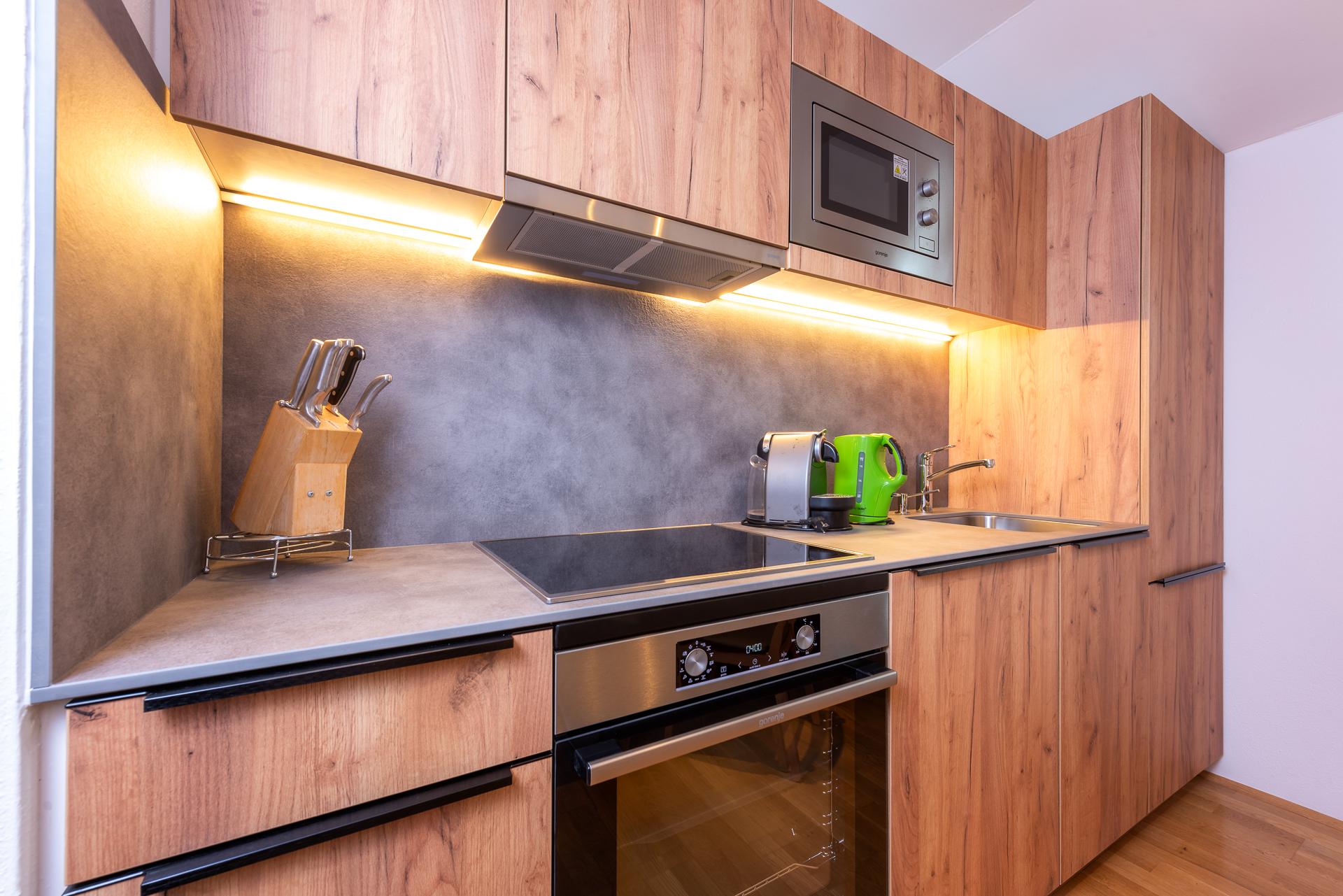 • Großer Wohn- und Essbereich mit sehr gut ausgestatteter Küche (Geschirrspüler, Nespresso Kaffeemaschine, Filterkaffeemaschine, Herd mit Ceran Kochfeld und Backofen, Wasserkocher, Mikrowelle)