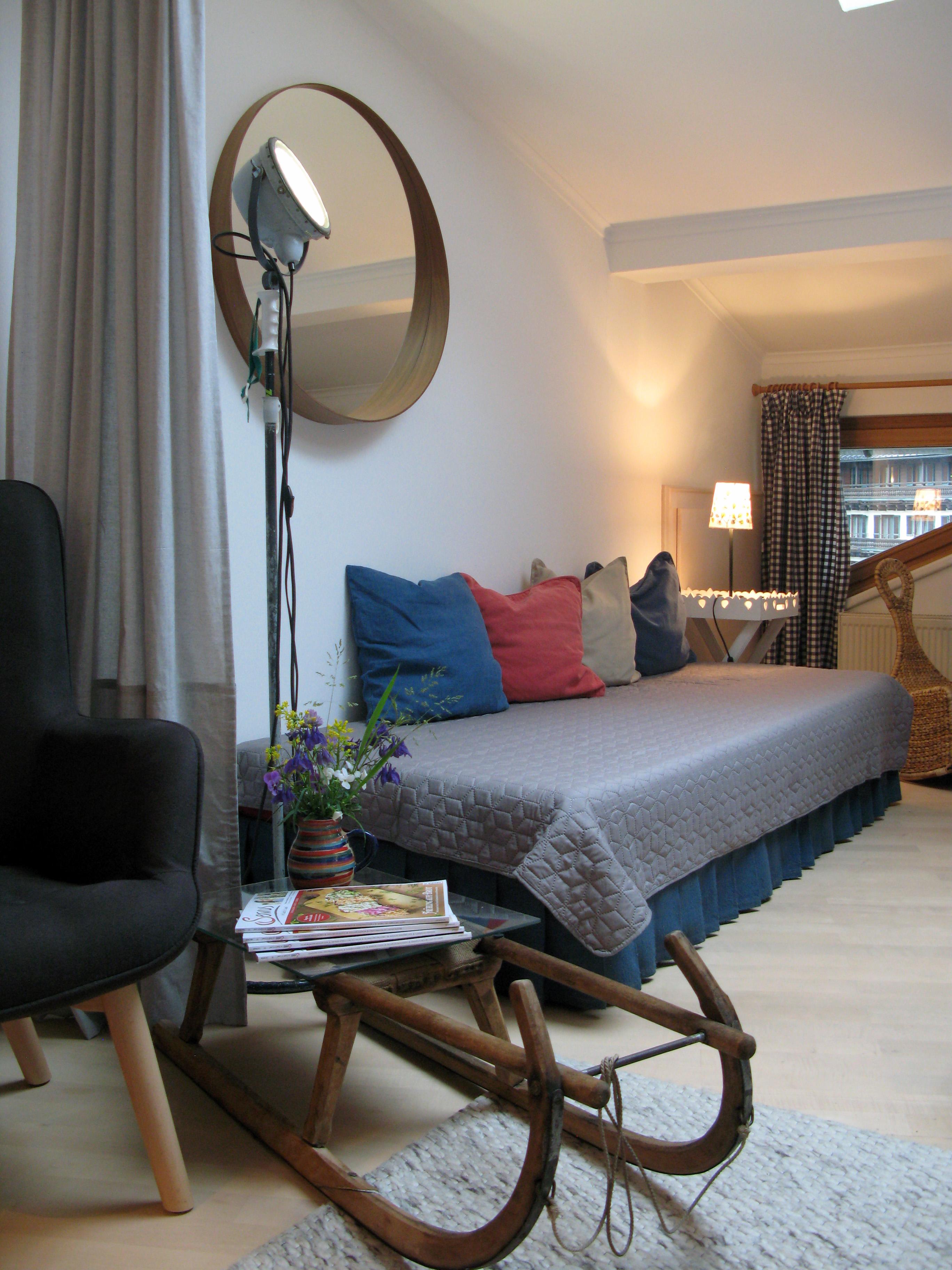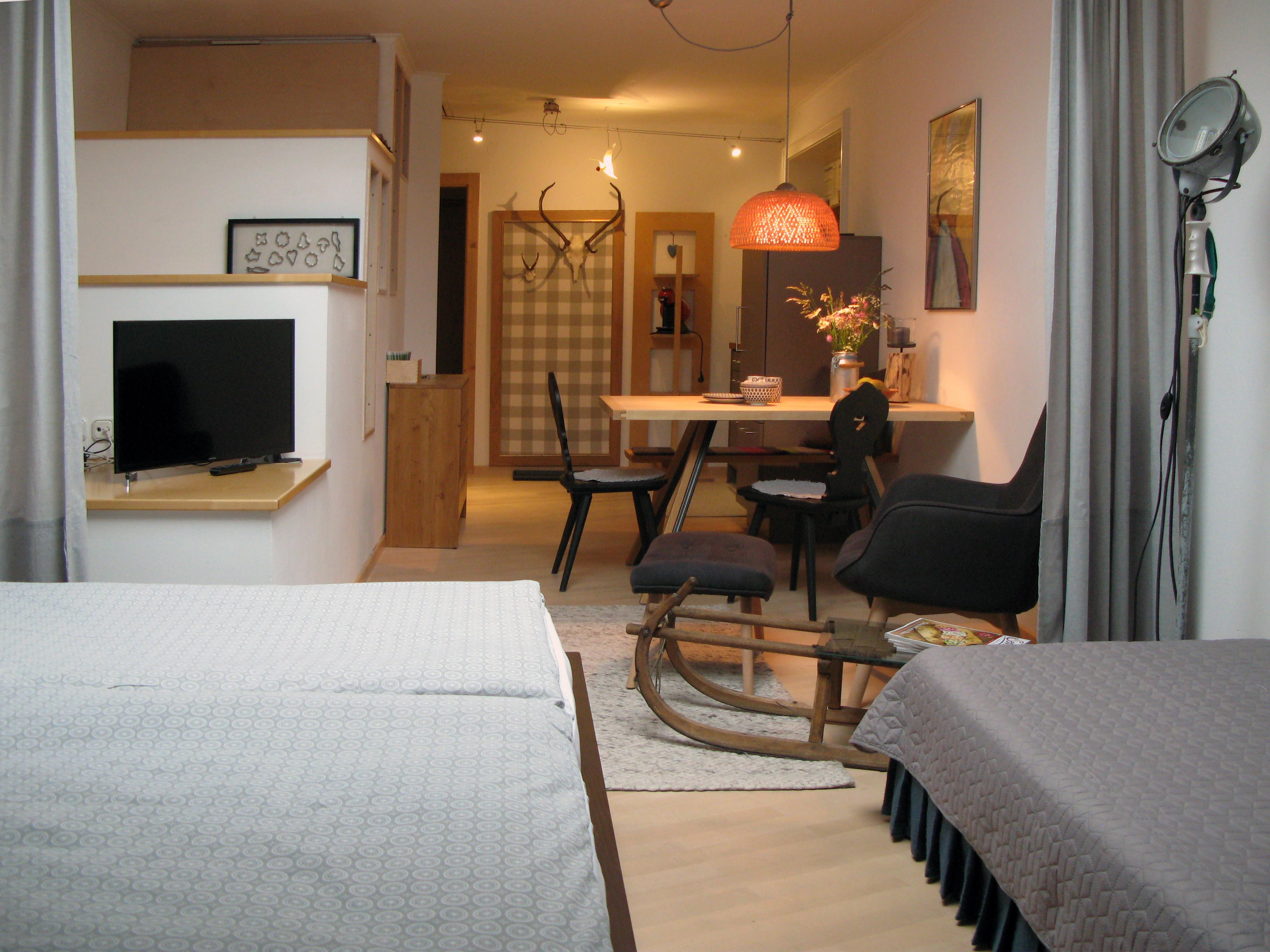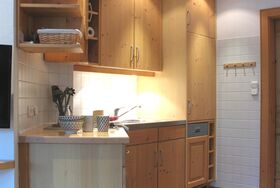 1-2 Schlafzimmer, Wohnküche mit Ausziehsofa, Küchenzeile (2 Herdplatten, Kühlschrank, Mikrowelle, Geschirrspüler, Wasserkocher und Kaffeemaschine).