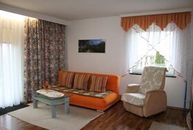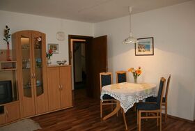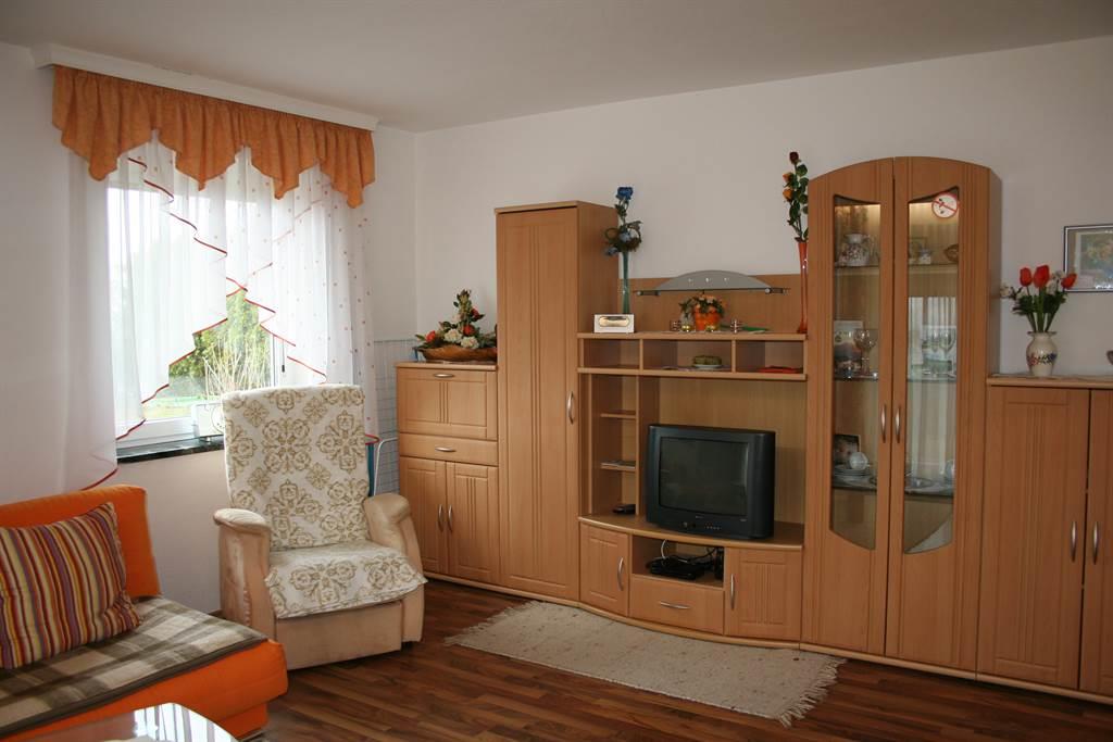 Unsere 65 m² Ferienwohnung im Erdgeschoss mit Terrasse bietet Platz für 2-3 Personen. Das Appartement verfügt über ein Doppelzimmer, eine voll ausgestattete Wohnküche mit Ausziehcouch für 2 Personen. Die Badewanne im Badezimmer verfügt über eine Duschwand, das WC ist separat.