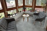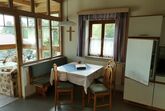 Die Einrichtung ist in Kiefernholz mit Sat-TV, große Wohnküche, Wintergarten, 2 getrennte Schlafzimmer mit jeweils Dusche und WC, Vorraum und eigene Terrasse.