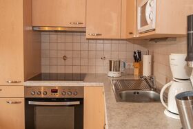 Wohnküche mit Balkon und TV, Kinderzimmer, Doppelzimmer mit DU/WC, sowie weiteres WC stehen für Ihren Urlaub bereit.