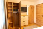 • geräumigen, Vollholz-möblierten Einzel-, Doppel-, Familienzimmern und Studios mit Boxspringbetten in „Treca“ Topqualität, Dusche oder Badewanne, separatem WC