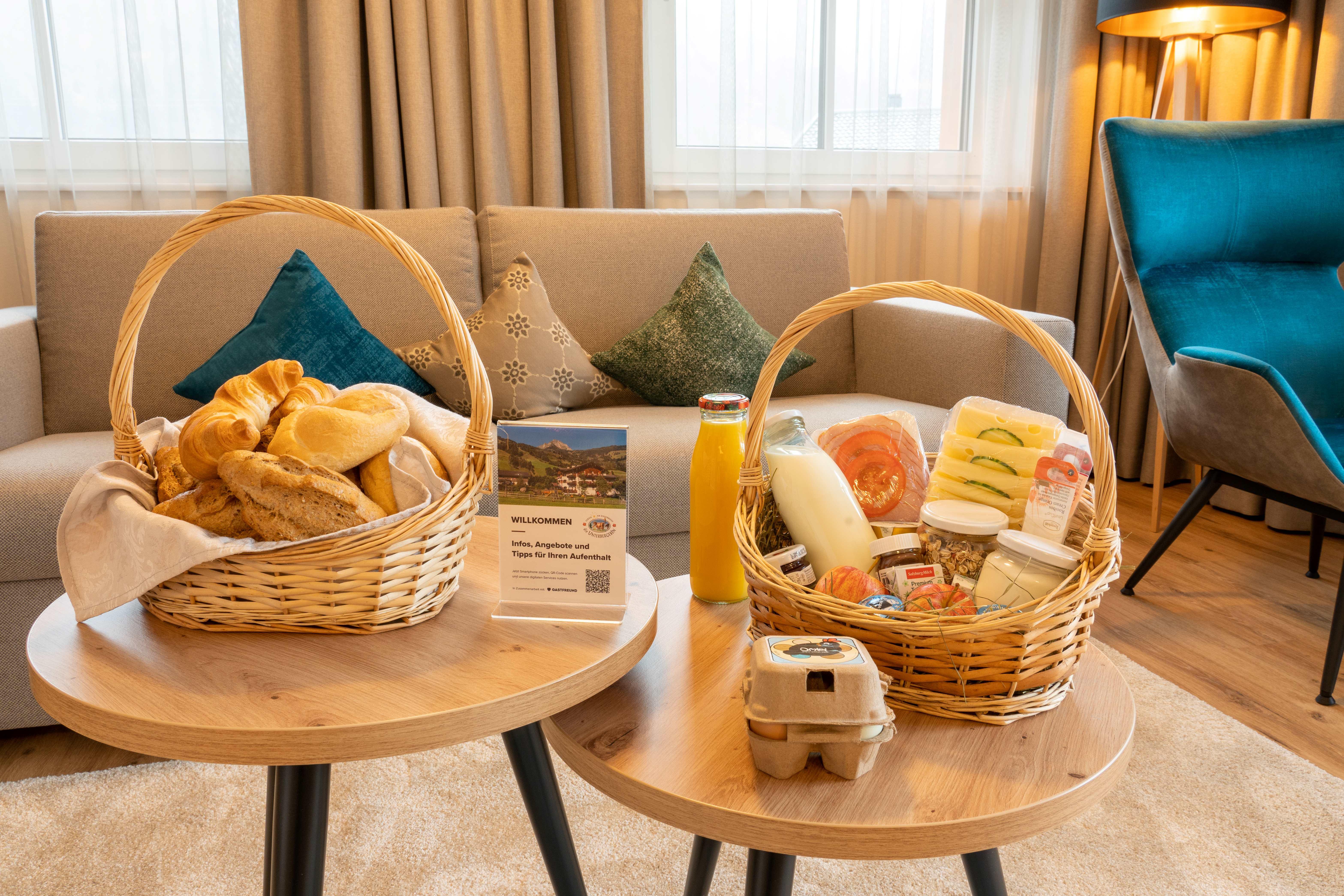 Starten Sie Ihren Tag mit einem köstlichen Feinschmecker-Frühstücksbuffet und lassen Sie sich von regionalen Köstlichkeiten verwöhnen. Vom selbstgepressten Apfel-Karottensaft, Bio-Eiern vom eigenen Hof, frisch geflocktem Hafer für’s Müsli bis hin zu Prosecco und Kombucha finden Sie hier alles, was das Herz begehrt. Für Frühaufsteher wird zudem ein leckeres Thermofrühstück geboten (bitte anmelden). Gäste der Ferienwohnungen haben die Möglichkeit das Buffet, Frühstückskörbe und Brötchenservice der Frühstückspension optional und auch tageweise zu buchen. Im hauseigenen Hofladen gibt es außerdem zahlreiche, selbstgemachte Produkte und Speisen, die Sie in Ihrer Ferienwohnung selber erwärmen können. Für den kleinen Hunger oder großen Durst zwischendurch, steht außerdem ein Warenautomat mit einer Auswahl an Getränken und Snacks bereit. Genießen Sie den Ausklang Ihres Urlaubstages auf Ihrem eigenen Balkon oder in der traditionellen Bauernstube bei einem gemütlichen Glas Wein.