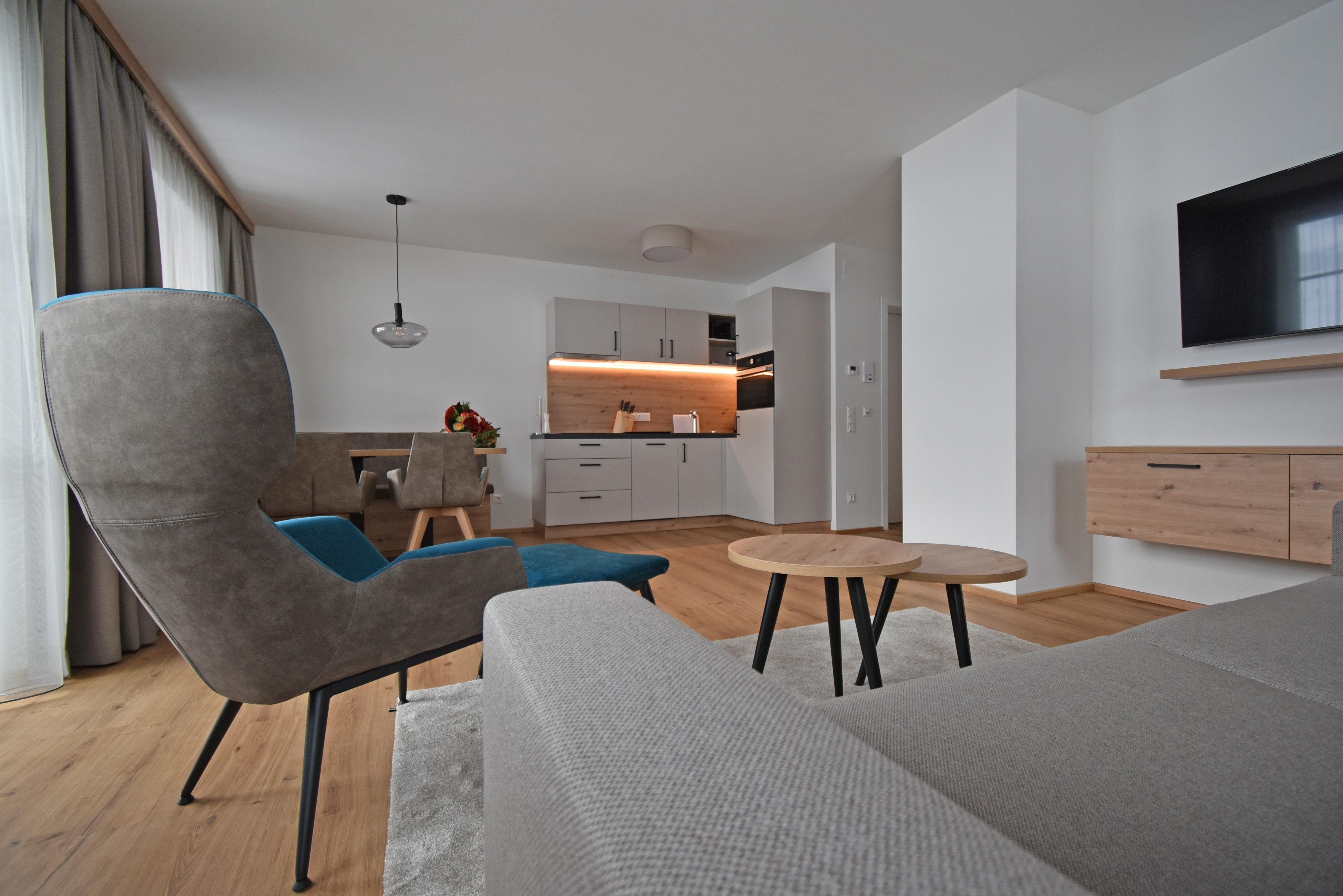 • nagelneuen, topausgestatteten Ferienwohnungen für 1 – 6 Personen mit Wohnküche inkl. „Kitchen-Kit“, 1-2 Schlafzimmern mit hochwertigen „Voglauer“ Betten inkl. Bettwäsche, 1-2 Badezimmern inkl. Handtücher und Haarfön sowie modernen Annehmlichkeiten wie Smart-TV in jedem Zimmer, WLAN, Geschirrspüler, Kühlschrank mit Gefrierfach, Backofen mit Mikrowellenfunktion u.v.m.